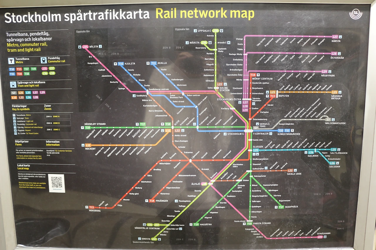 아래에 스톡홀름의 메트로나 전철의 노선도인데, 엄청 복잡하고 여러 곳을 갈 수 있다. 스톡홀름은 여러 섬이