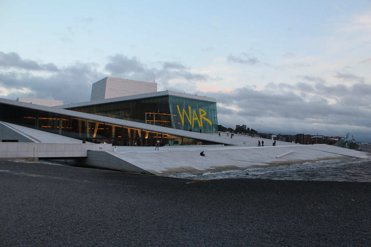 오페라하우스가 바다위로 지어진 예쁜 건축물이었는데 누군가가 WAR 이라는 단어로 그래피티를 해두었다..ㅜㅜ