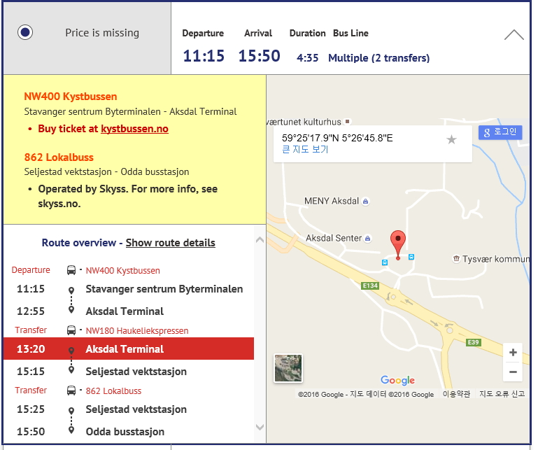 오따가 노르웨이 내에서 외진곳에있고 관광을 목적으로 가는곳이 아니기때문에 환승을해야 갈수있는곳이었다.
