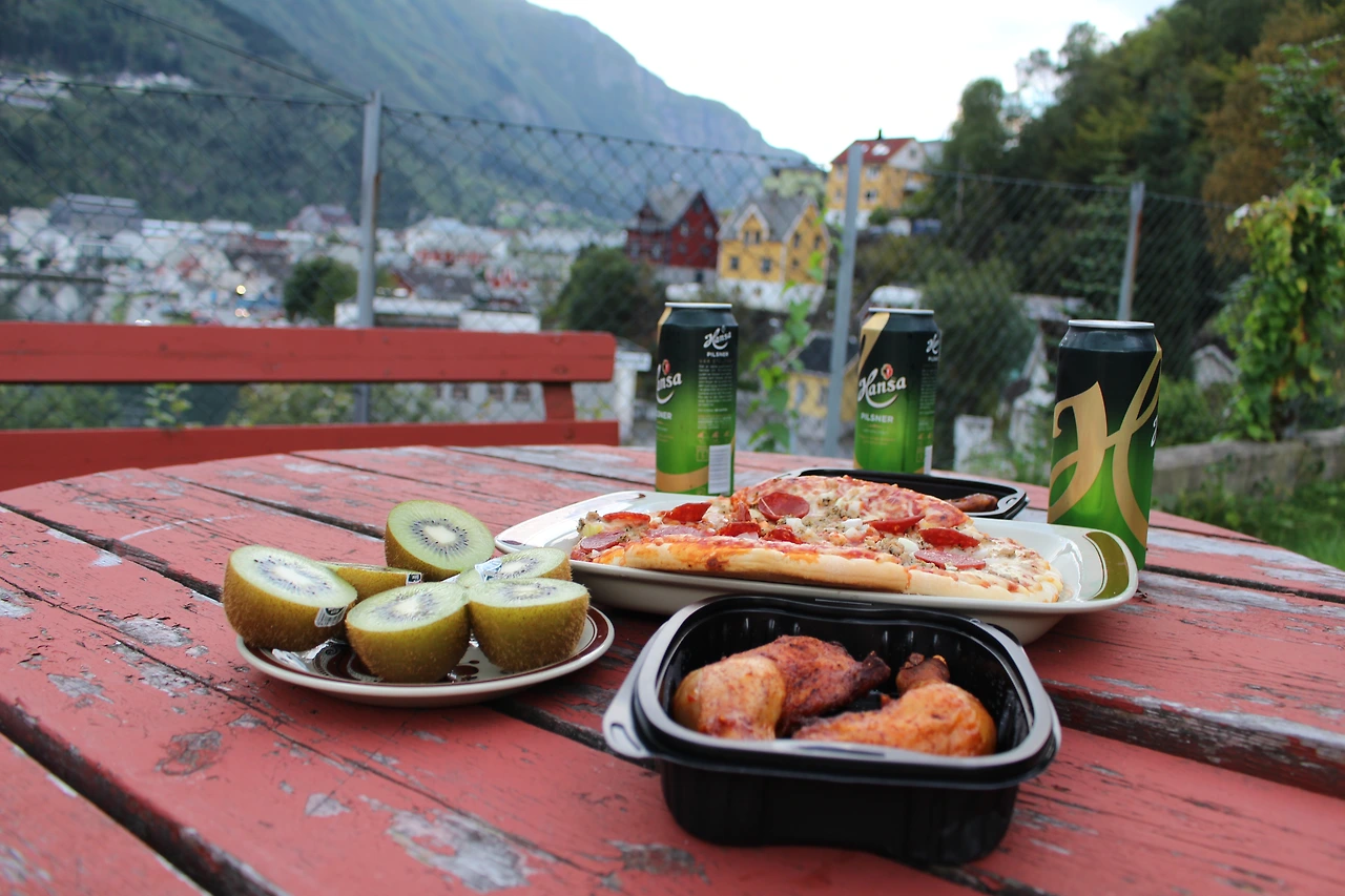 어제에 이어 남은 치킨과 삼겹살을 오븐에 구워 훈제로 아침을 해먹었다. 여기는 키위가 엄청싸서 자주 먹었는데 한개에 6크로네정도 한국돈으로 800원이었다. 거의 하루에 한개씩 사먹었던것같다.