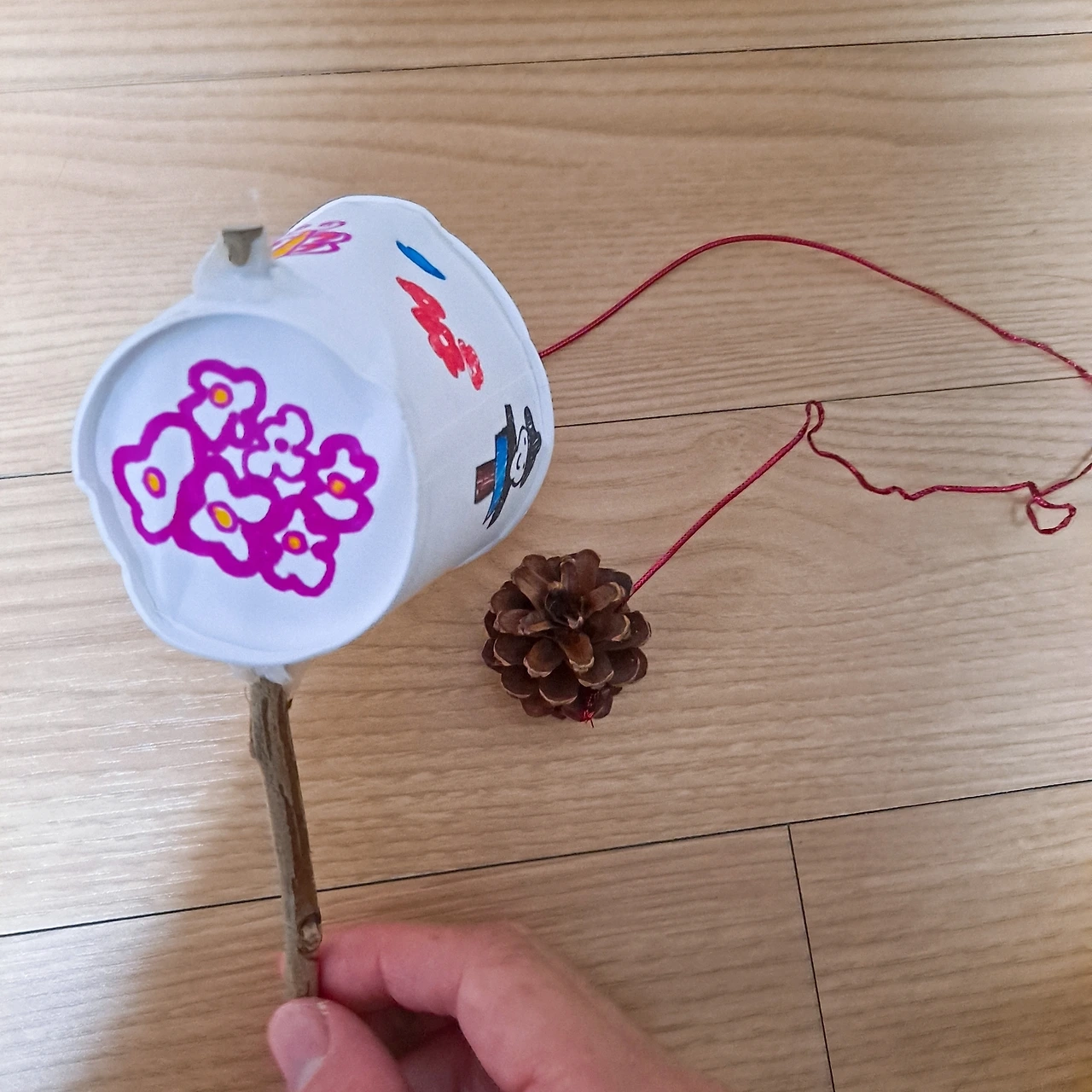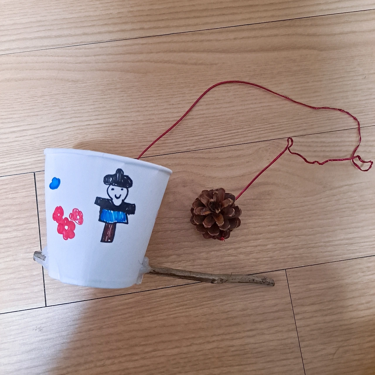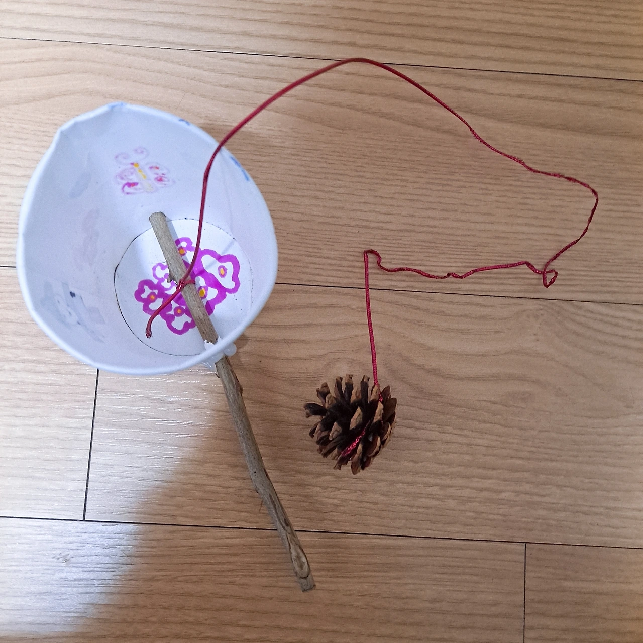 솔방울을 저기 보이는 종이컵 속에 퐁당 넣으면 되더라고요 은근 집중력을 필요로 해서 아이들 전통놀이로 좋을 것 같아요 어려워 보이던데 아이는 제법 잘하더라고요