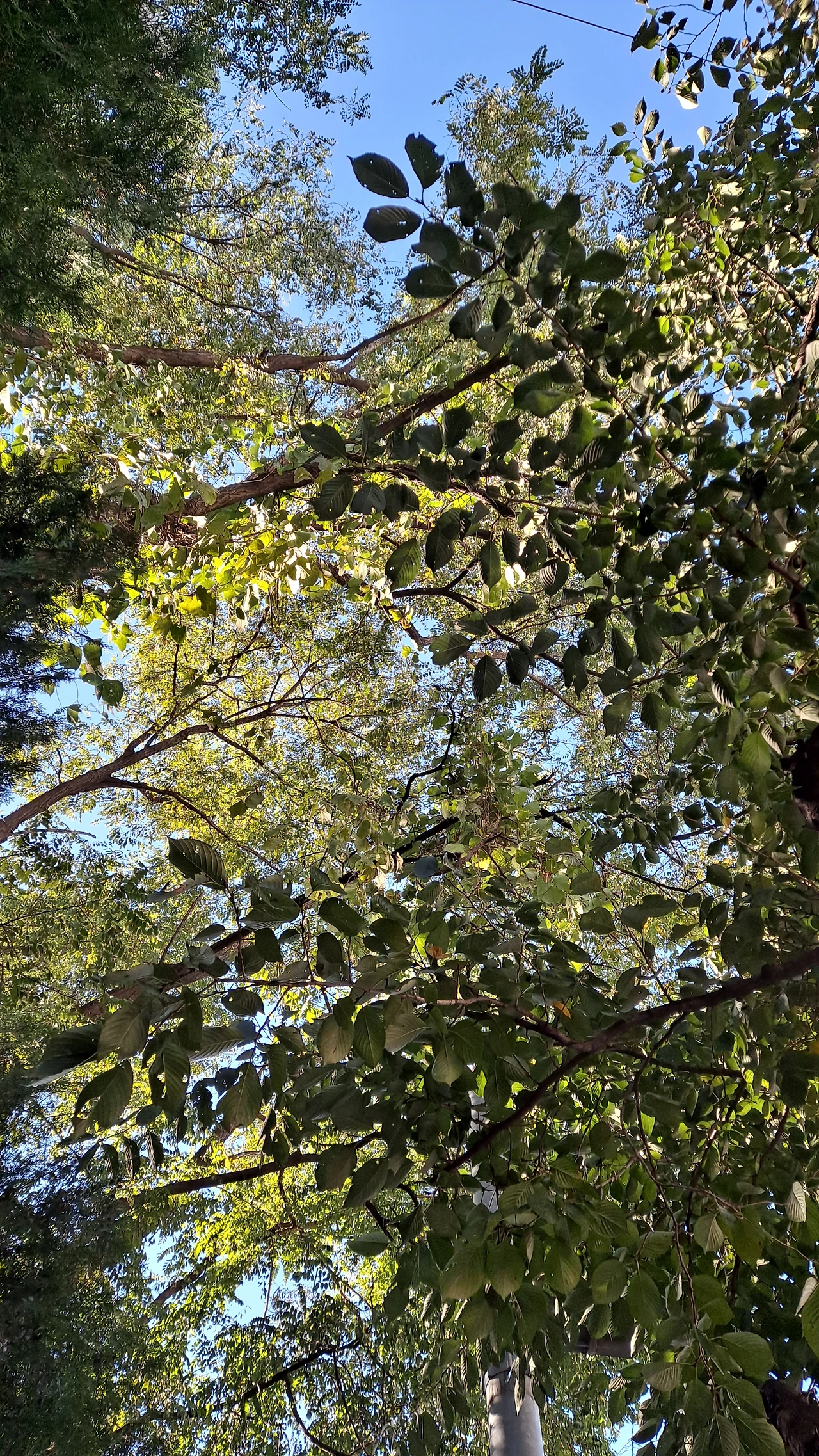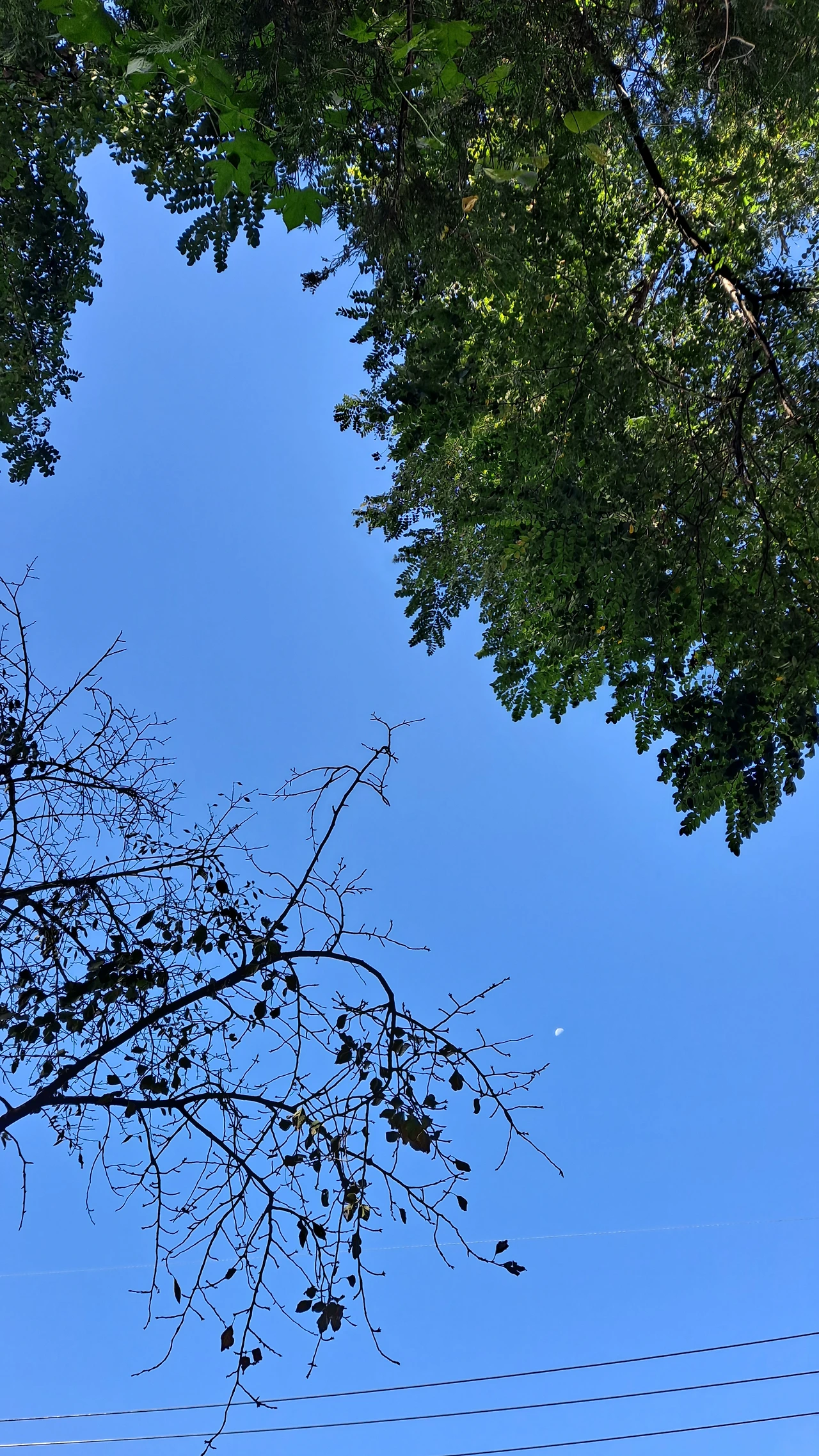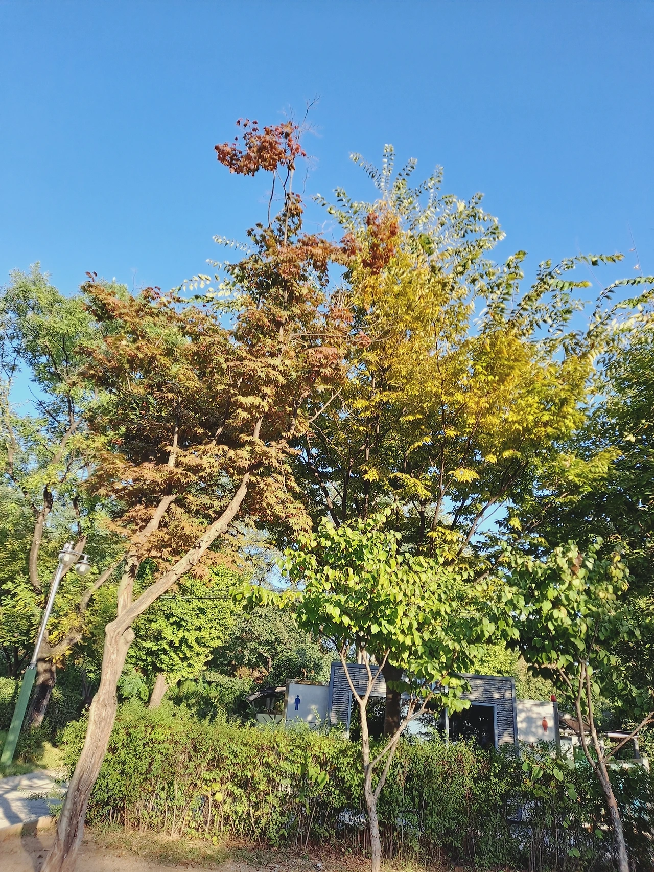2022년 10월 17일 아침 멋진 나무들과 그사이로 보이는 아름다운 가을하늘에 감사