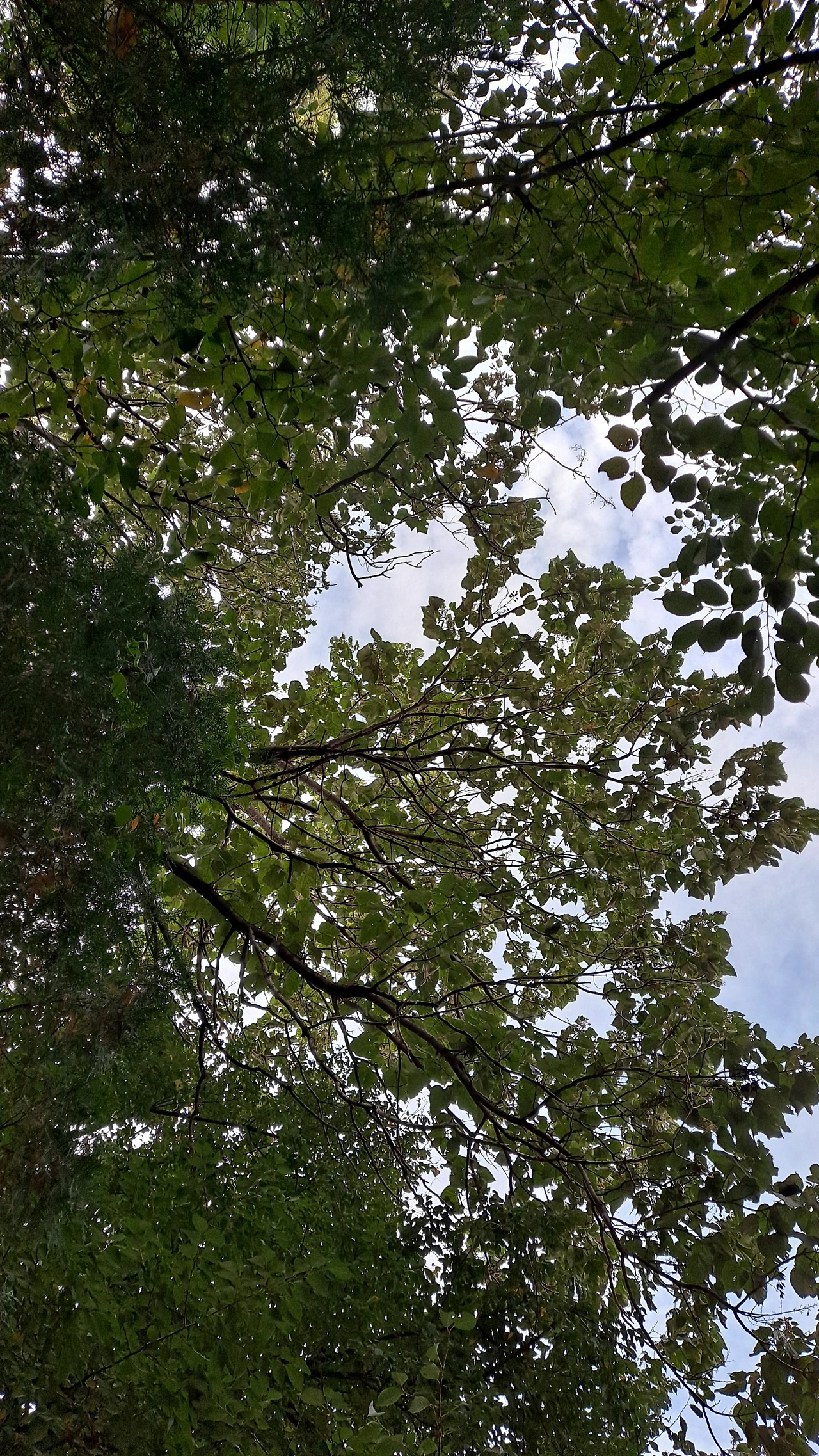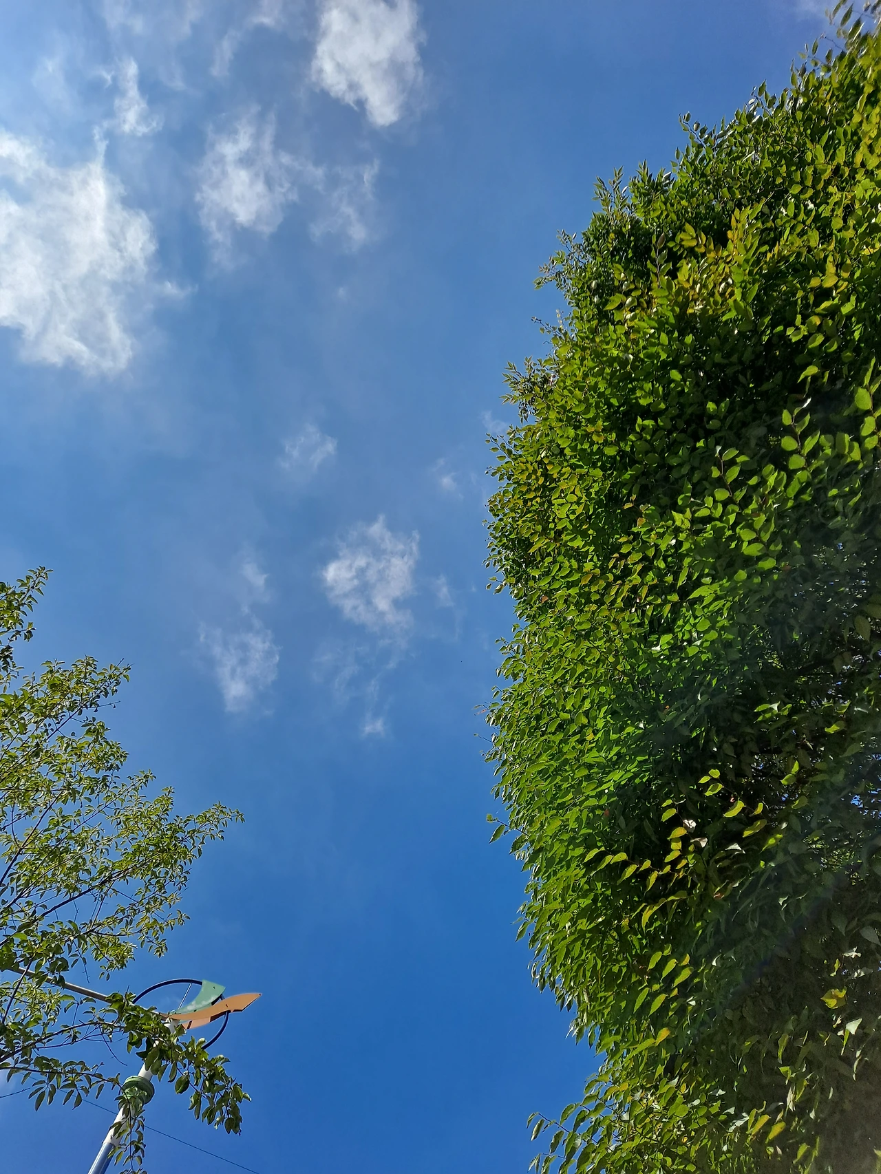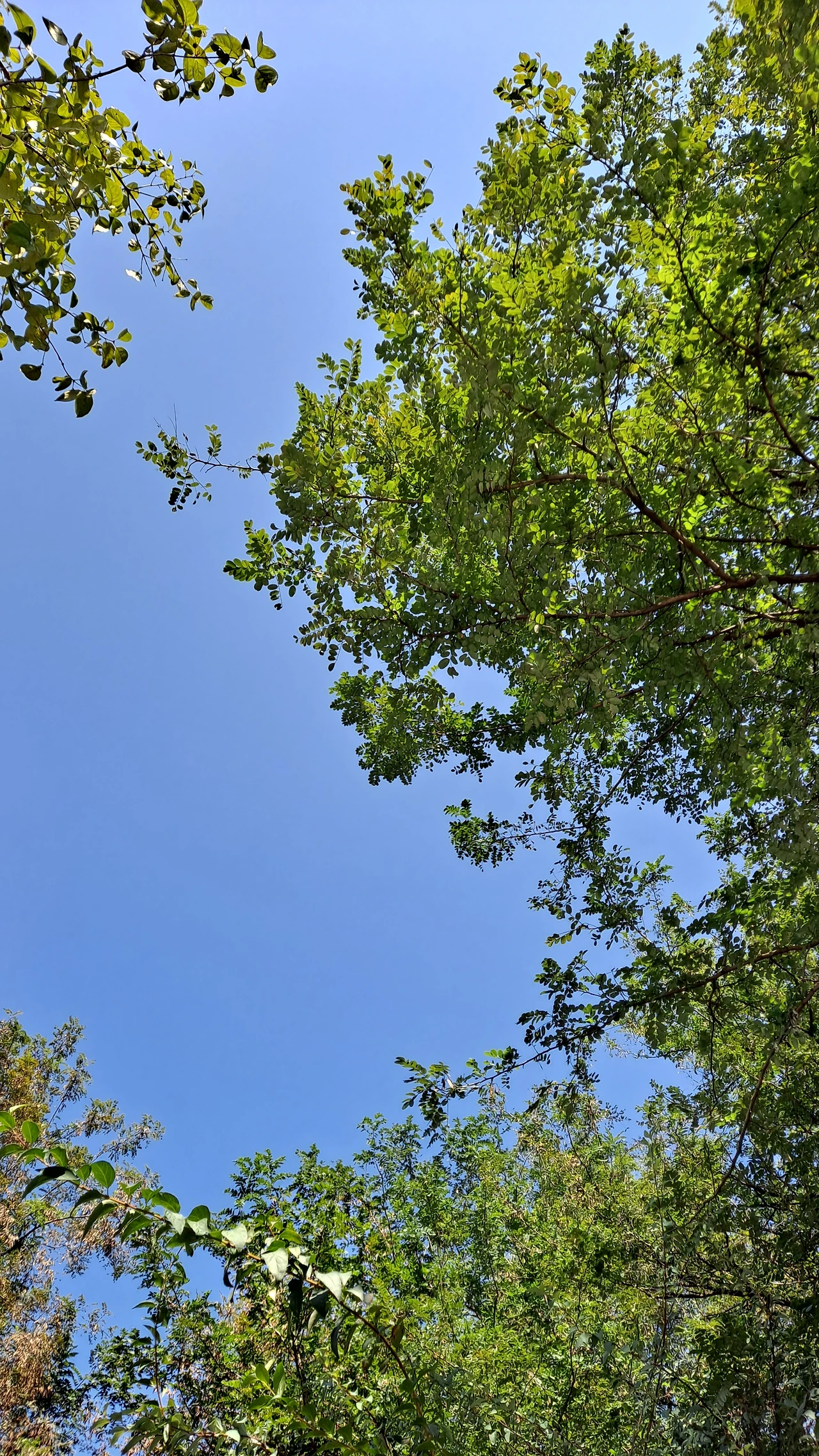 2022년 10월 17일 아침 멋진 나무들과 그사이로 보이는 아름다운 가을하늘에 감사