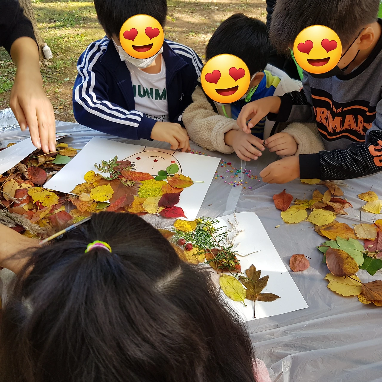 숲체험 활동 초등 1학년 친구들의 작품 아잉 귀여워라 팀별로 만들었나보다