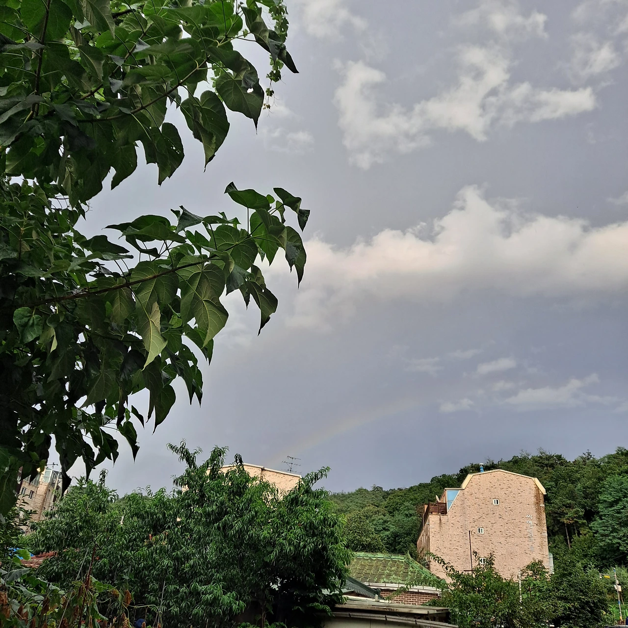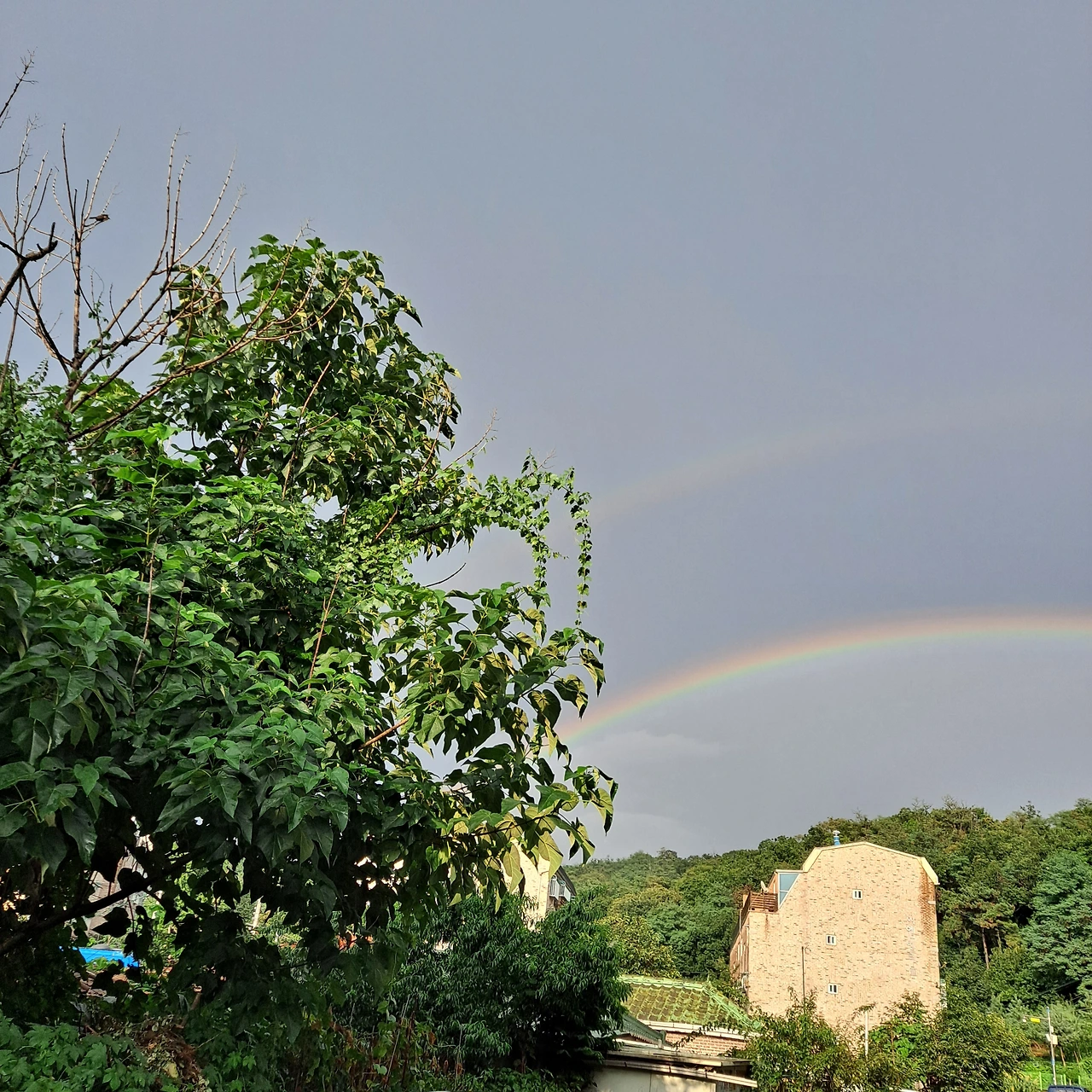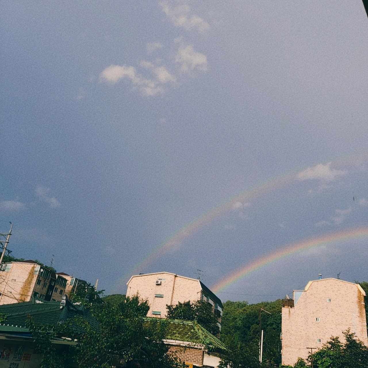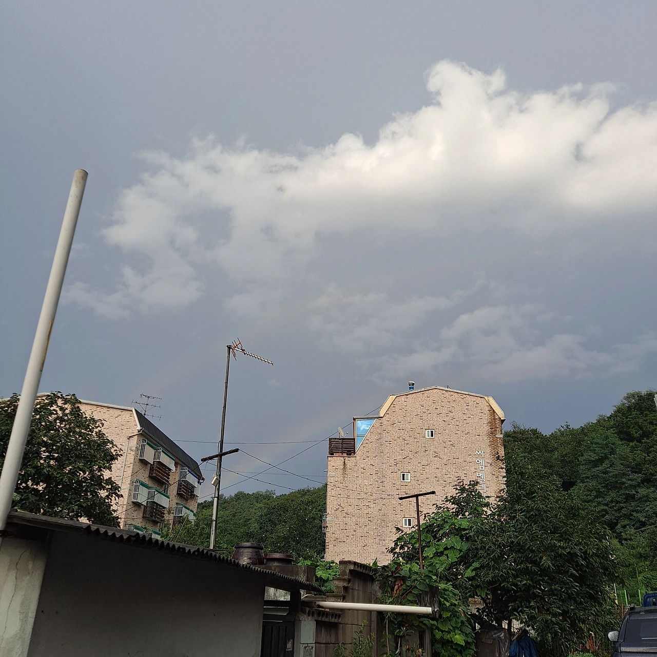 일요일 늦은 오후에 비그친 뒤에 무지개가 떴어요