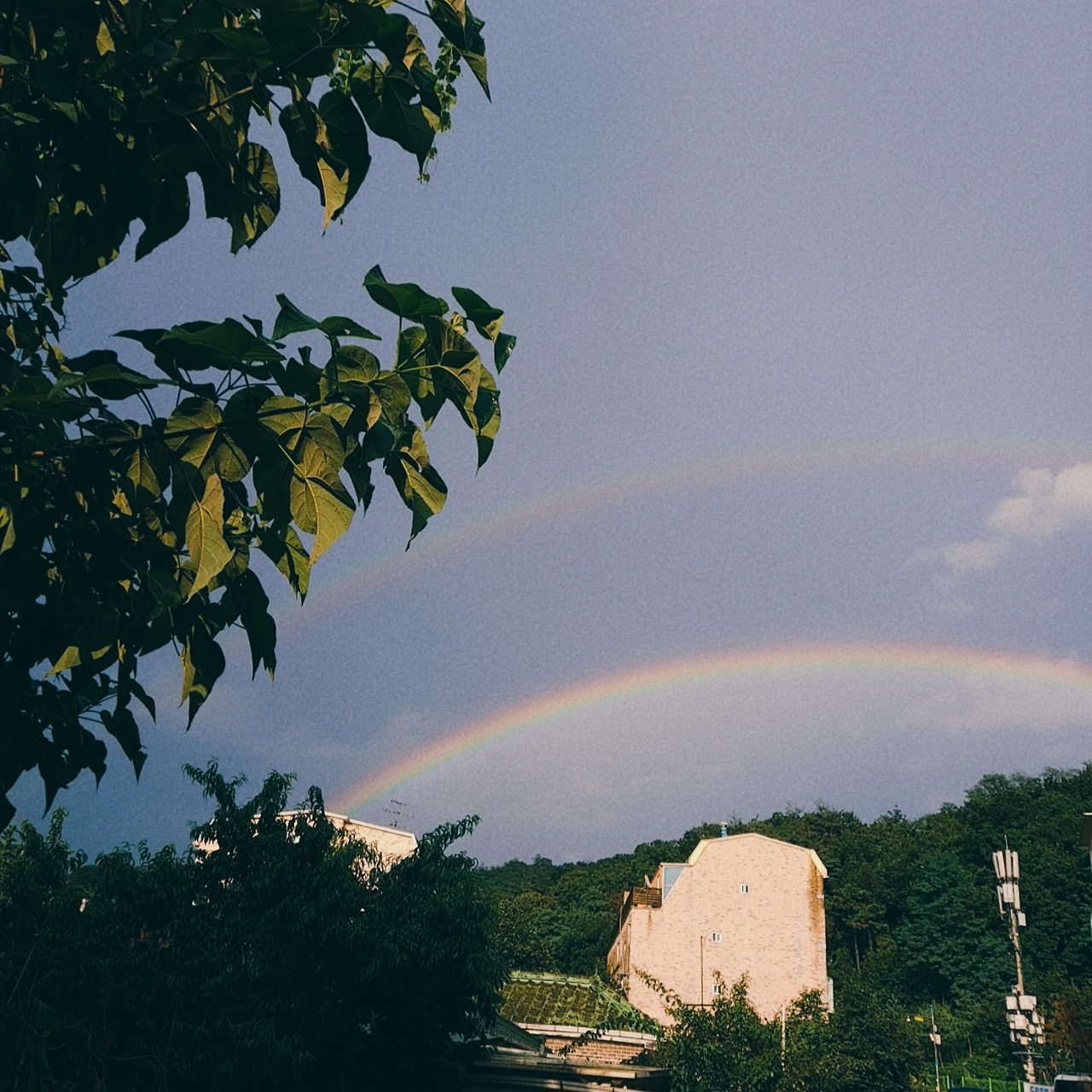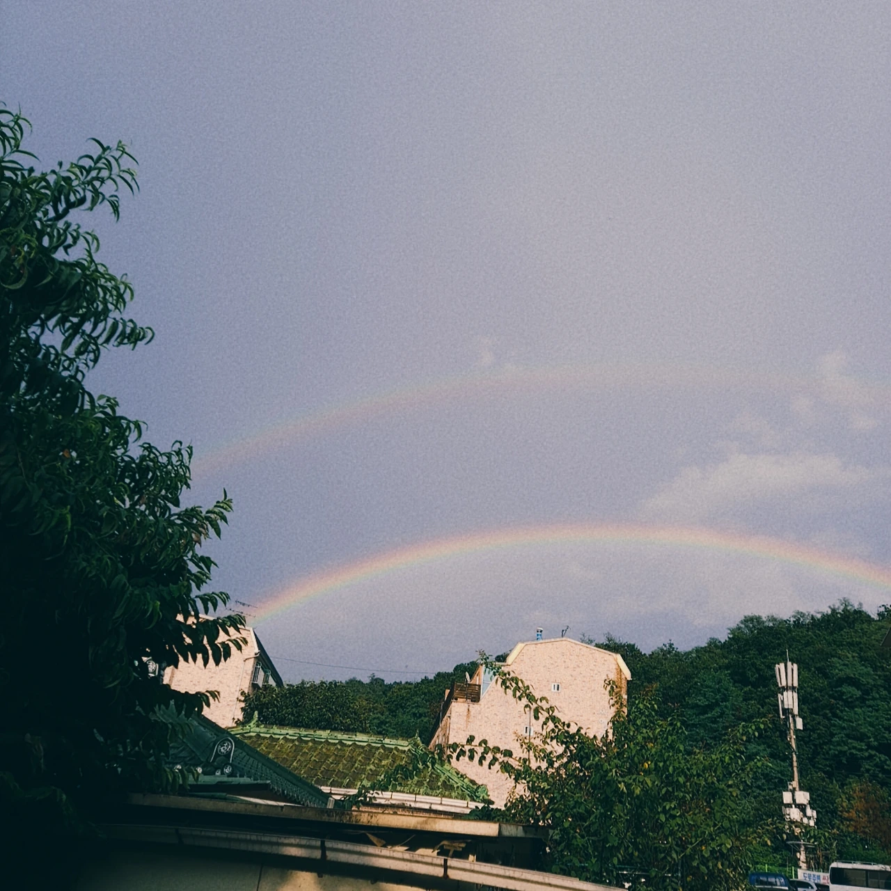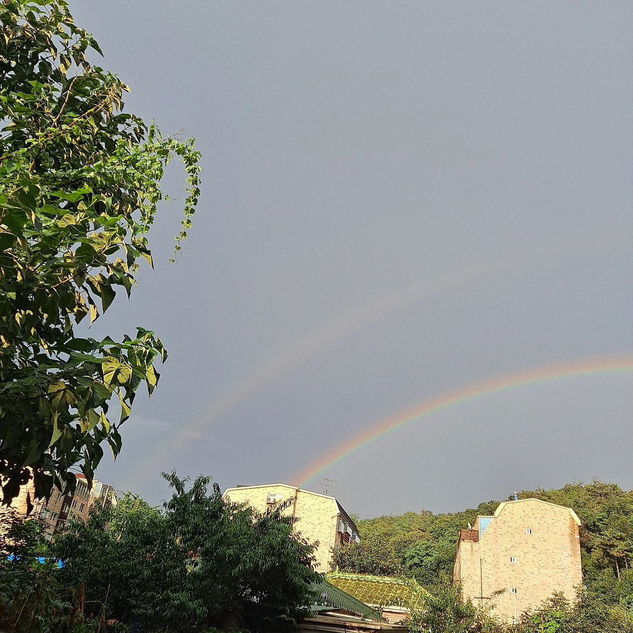 일요일 늦은 오후에 비그친 뒤에 무지개가 떴어요