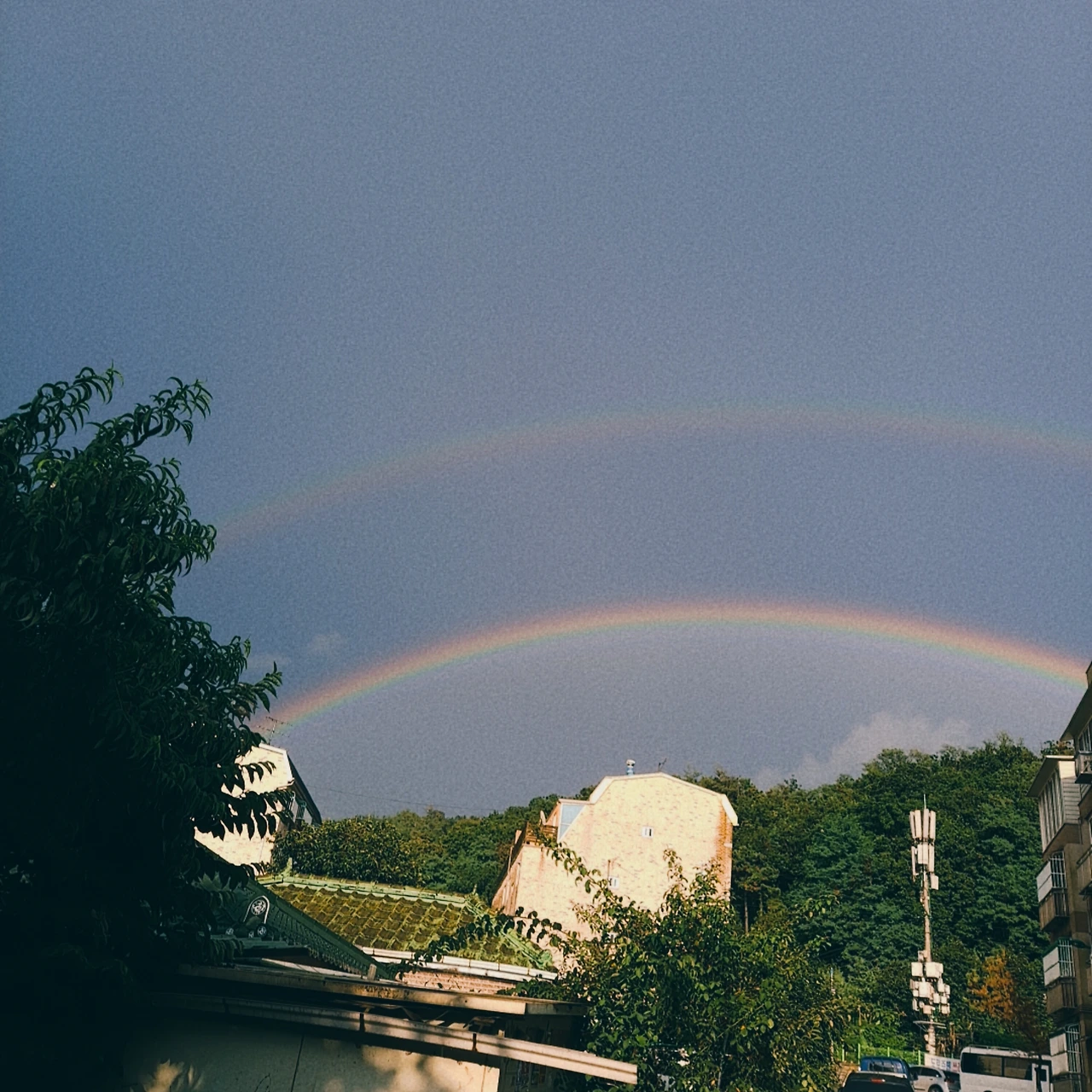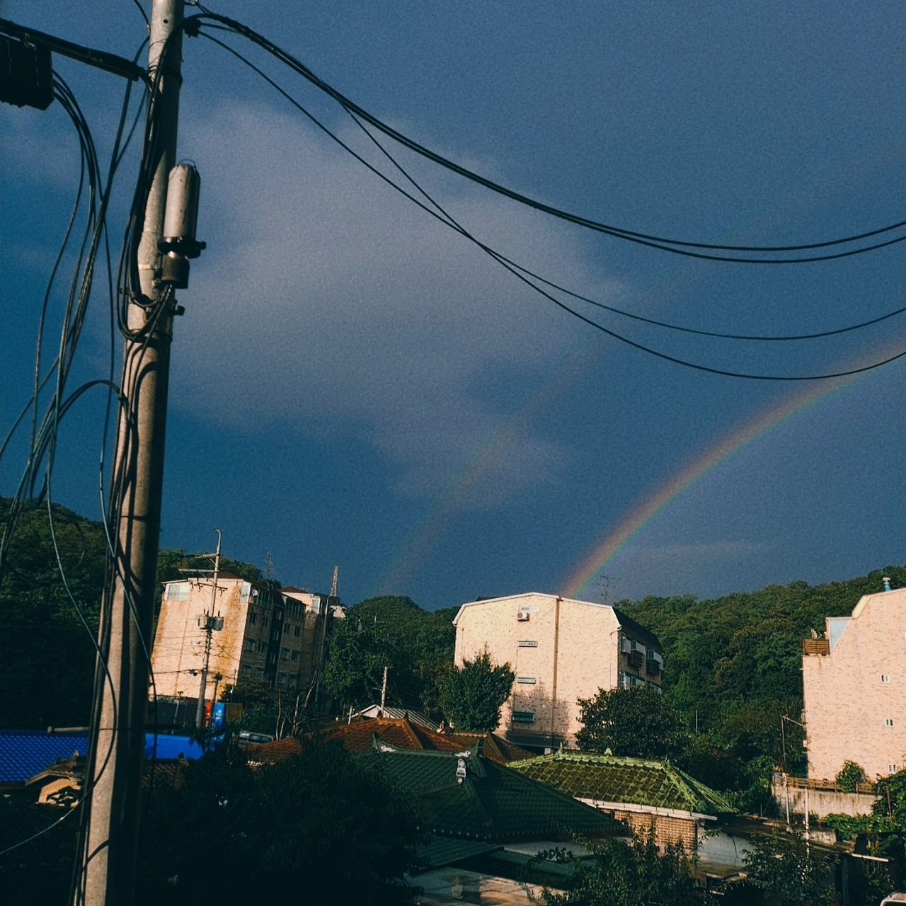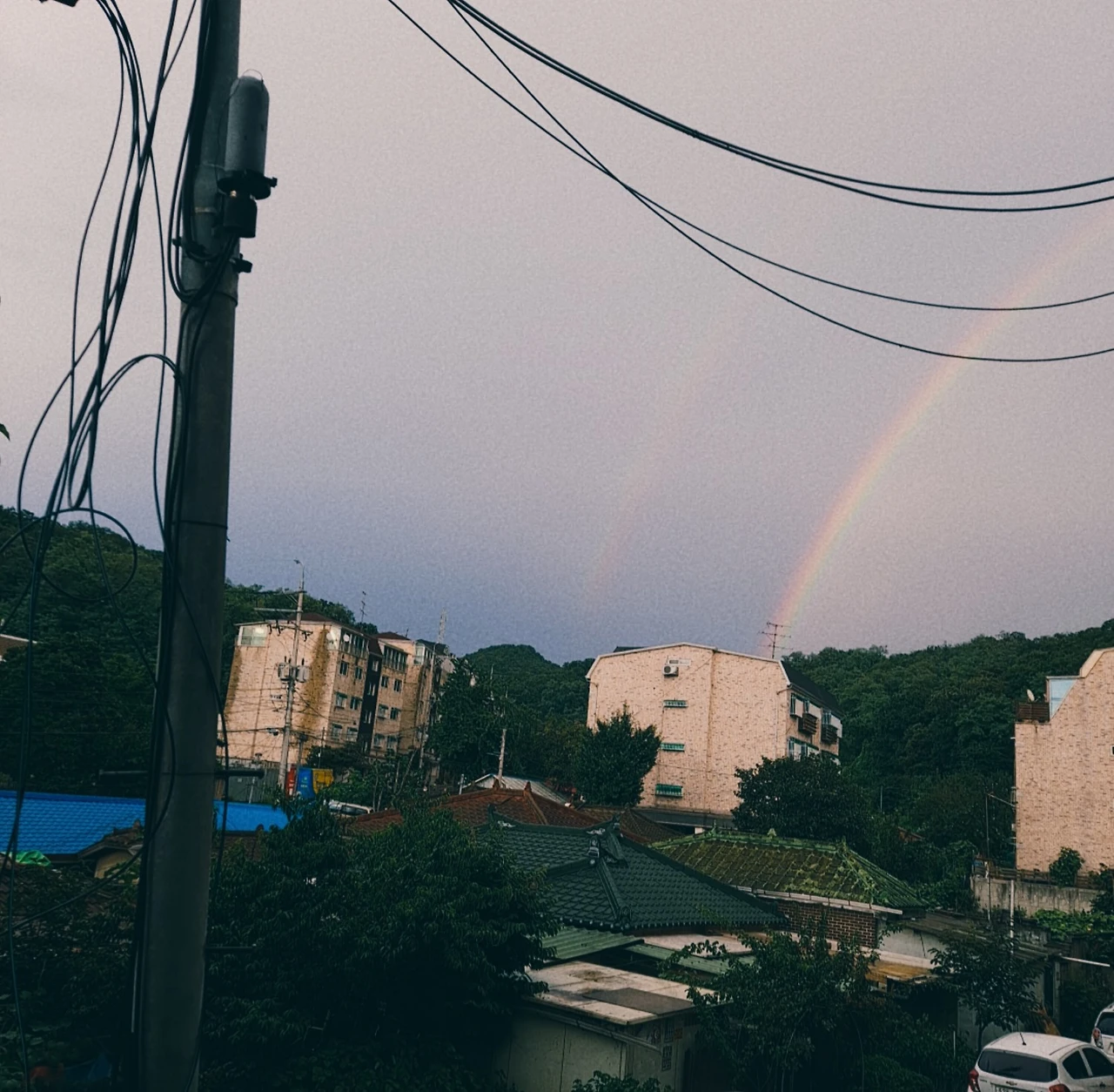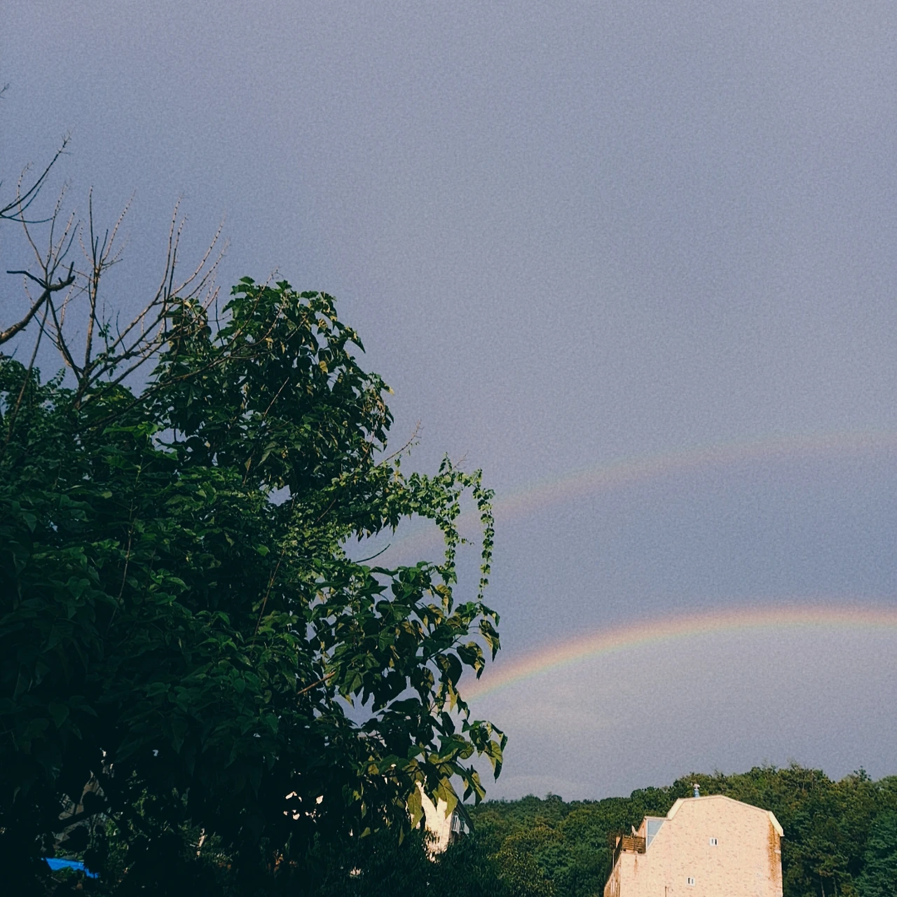 일요일 늦은 오후에 비그친 뒤에 무지개가 떴어요