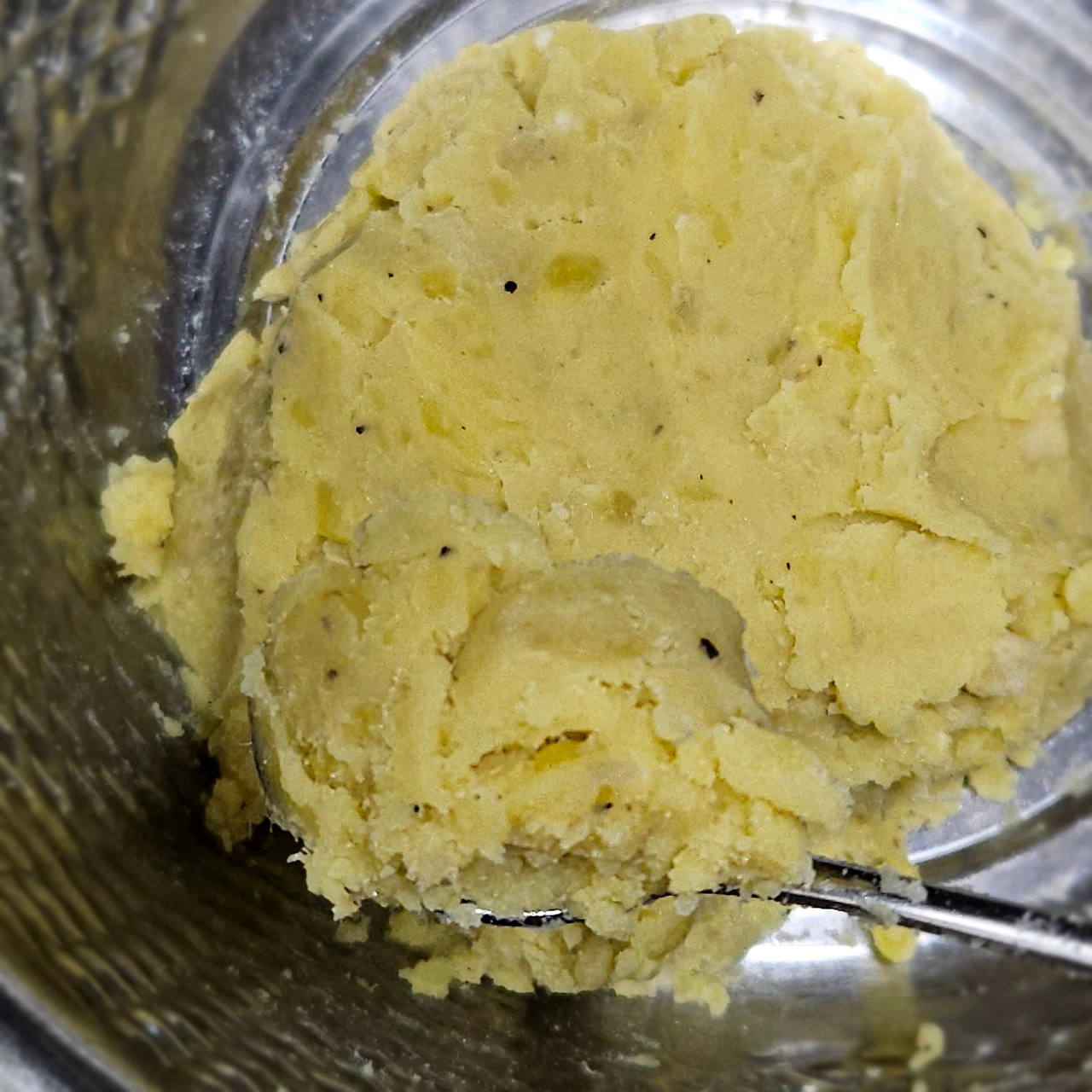 4. 찐 고구마 껍질을 벗기고 으깨주기