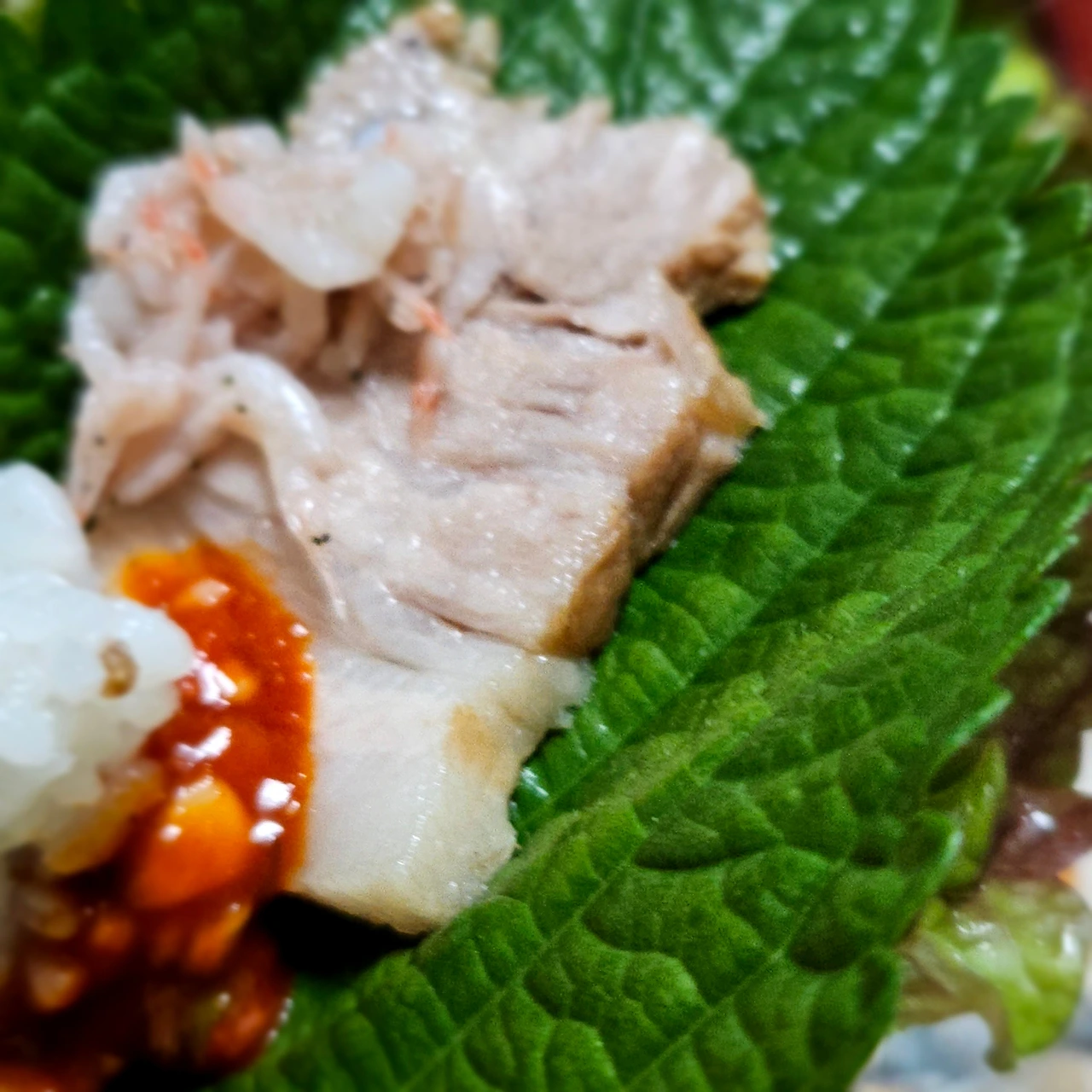 8. 상추, 깻잎, 새우젓갈, 쌈장에