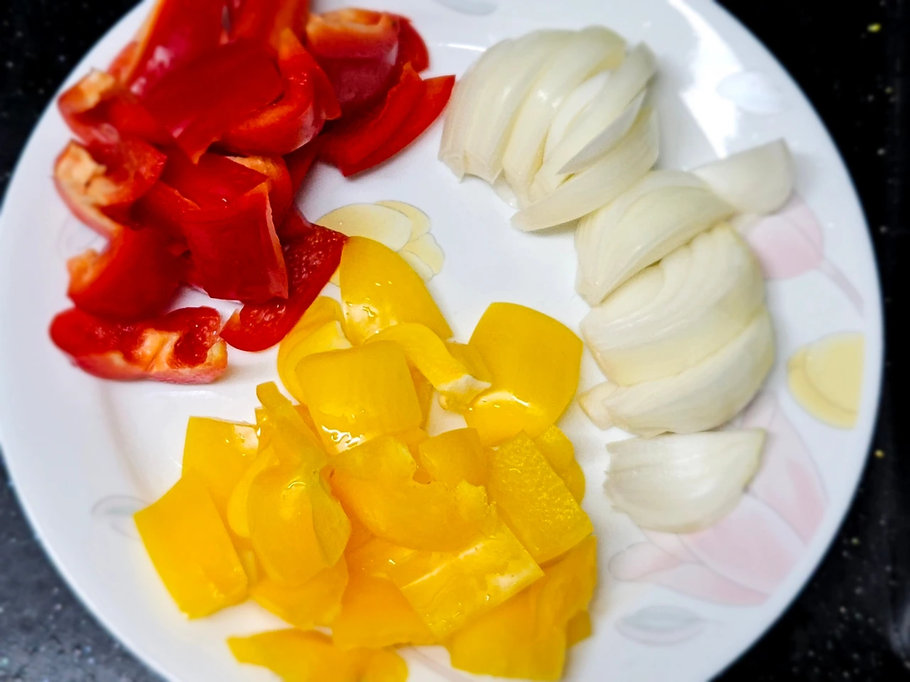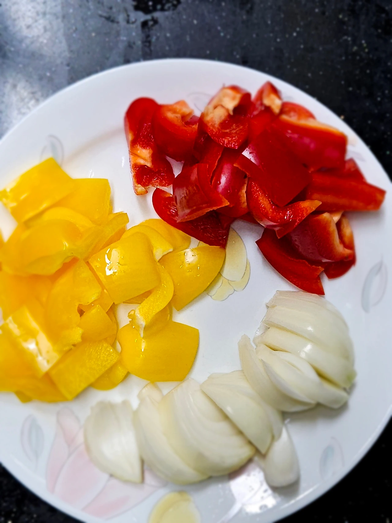 1) 파프리카 2개 양파 1개 먹기 좋게 썰어주기