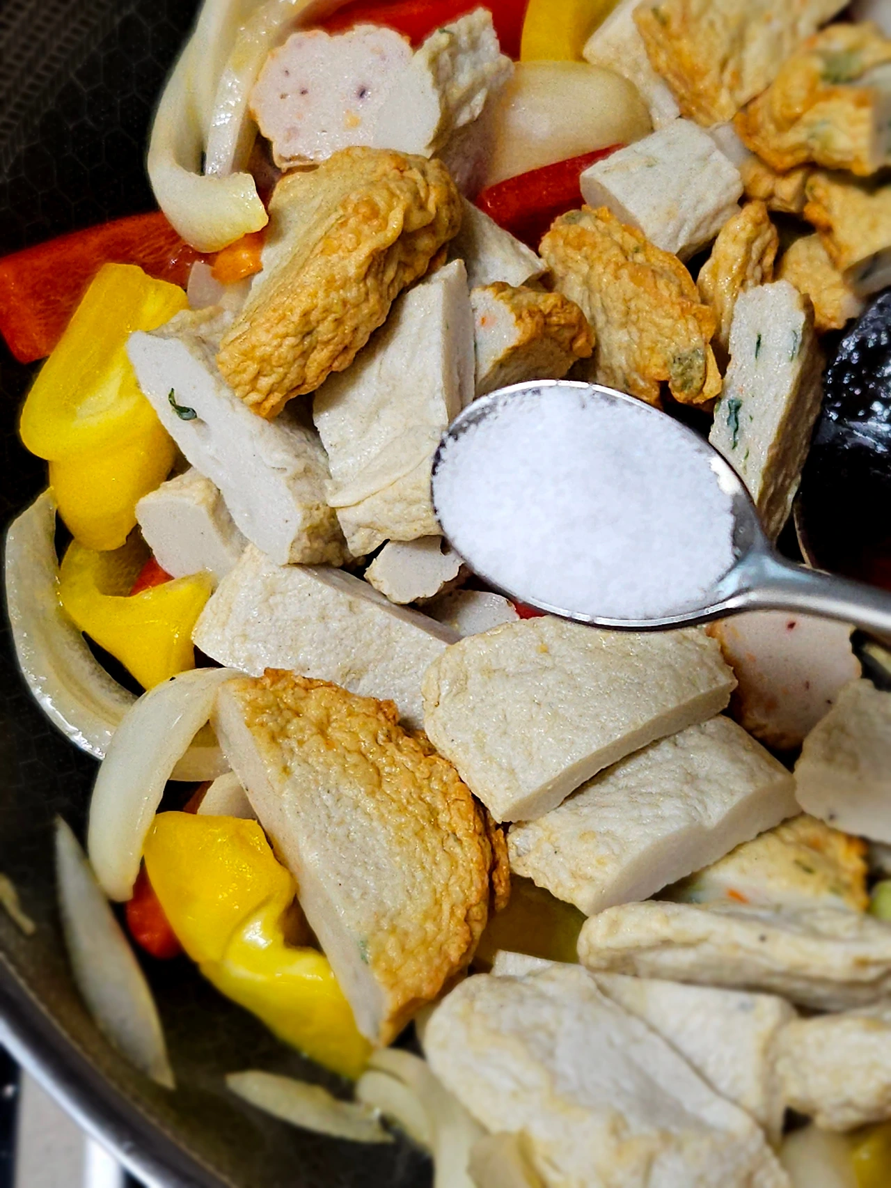 4) 썰어 놓은 어묵 한 대접 야채에 넣고 (중불조절해서)