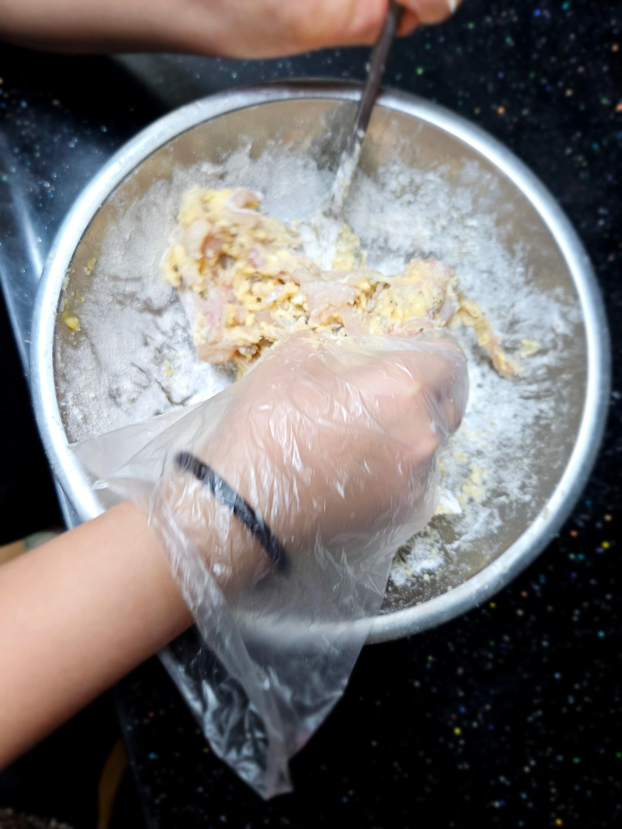 막내 아이가 새꼬시 튀김 반죽 만들고 싶다고 하더니 야무딱지게 잘도 반죽을 합니다