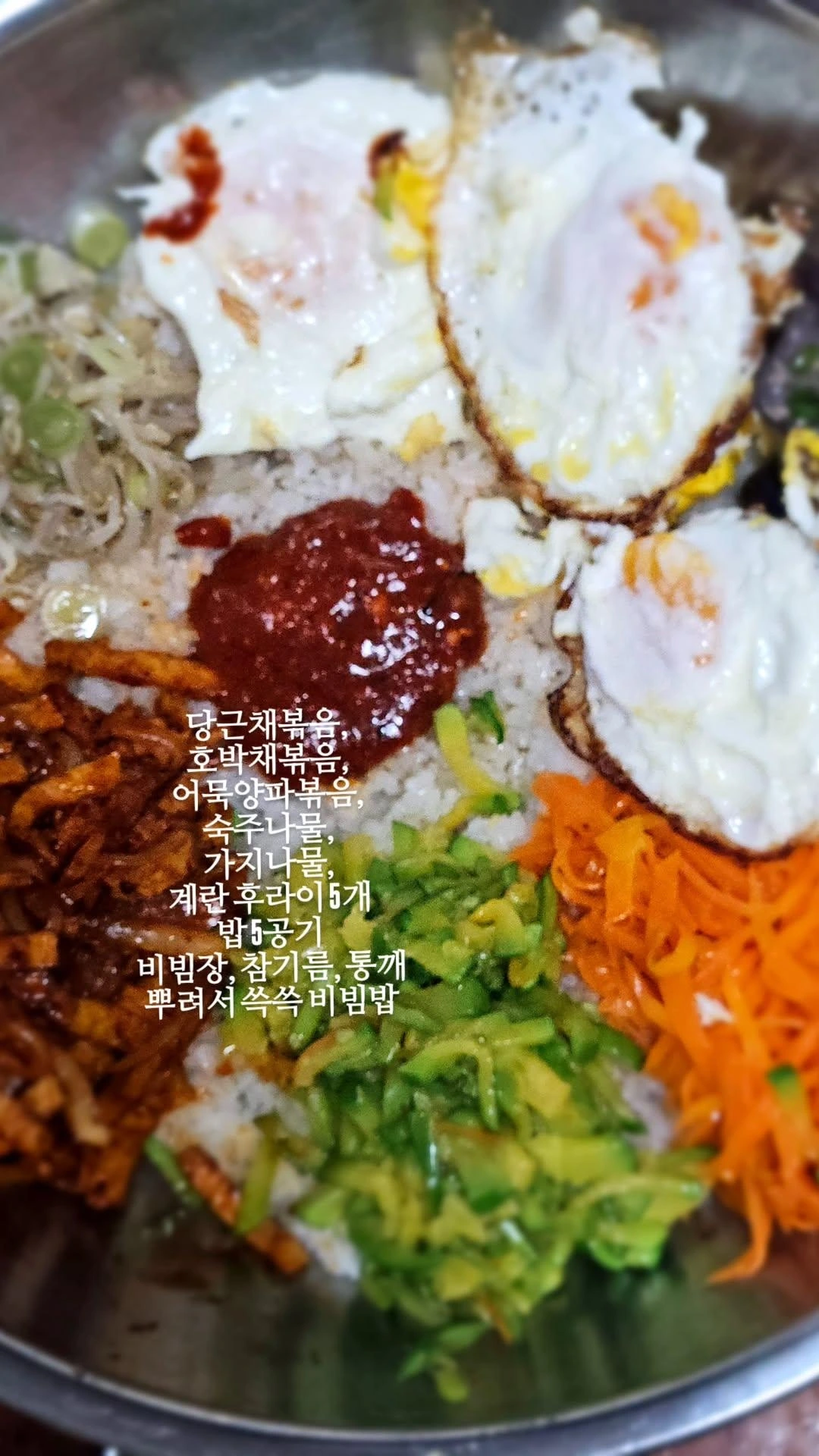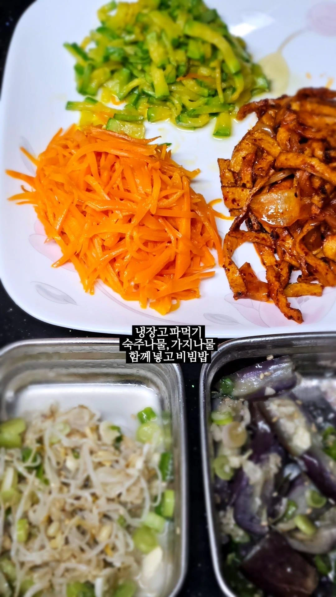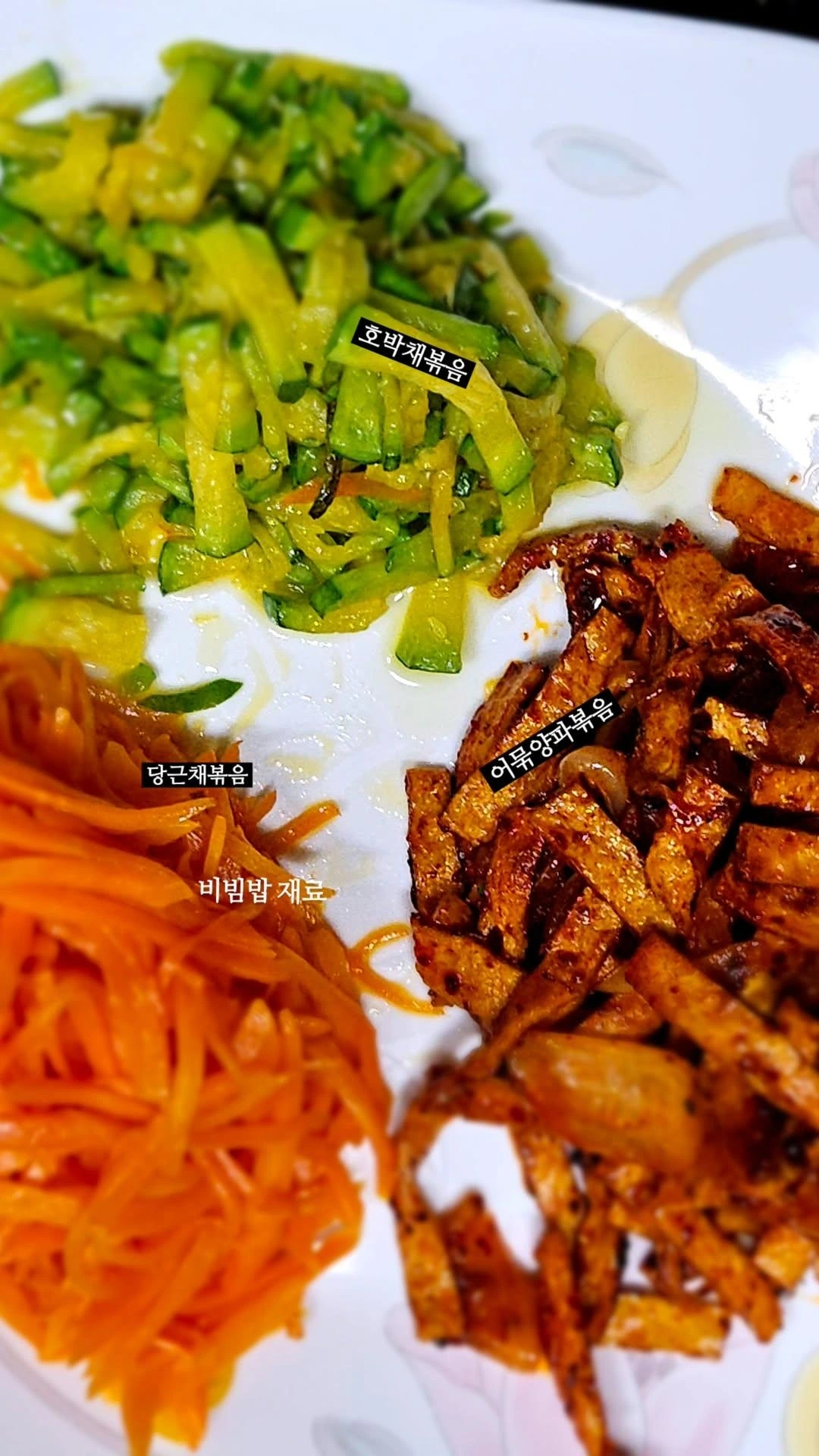 #비빔밥 #집밥 #숙주나물 #가지나물 #매콤어묵 #호박채볶음 #당근볶음 #겨울방학 #밑반찬 #주말메뉴 #겨울방학 #메뉴 #오늘뭐먹지