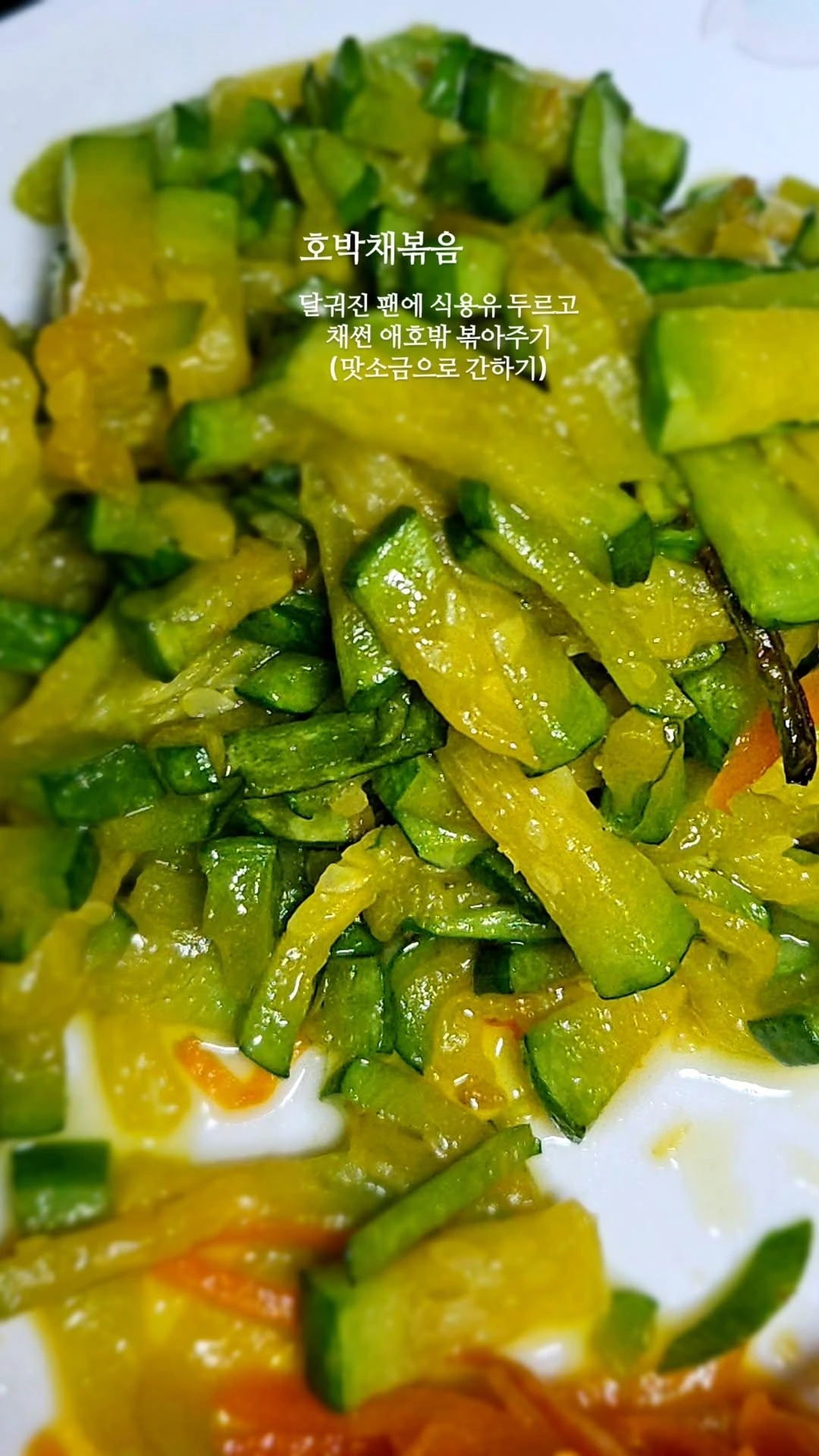 달궈진 팬에 식용유 두르고 채 썬 애호박 볶아주기