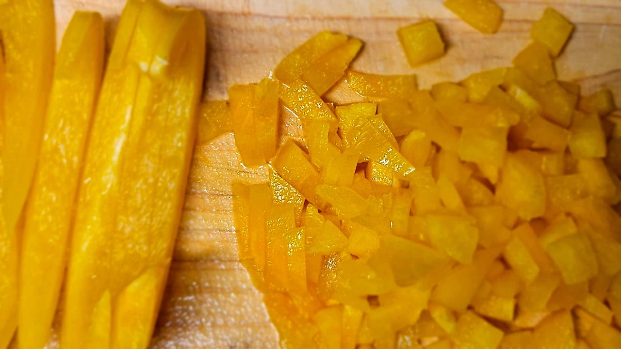 *노란 파프리카 준비했어요 채썬다음 잘게 썰어줍니다