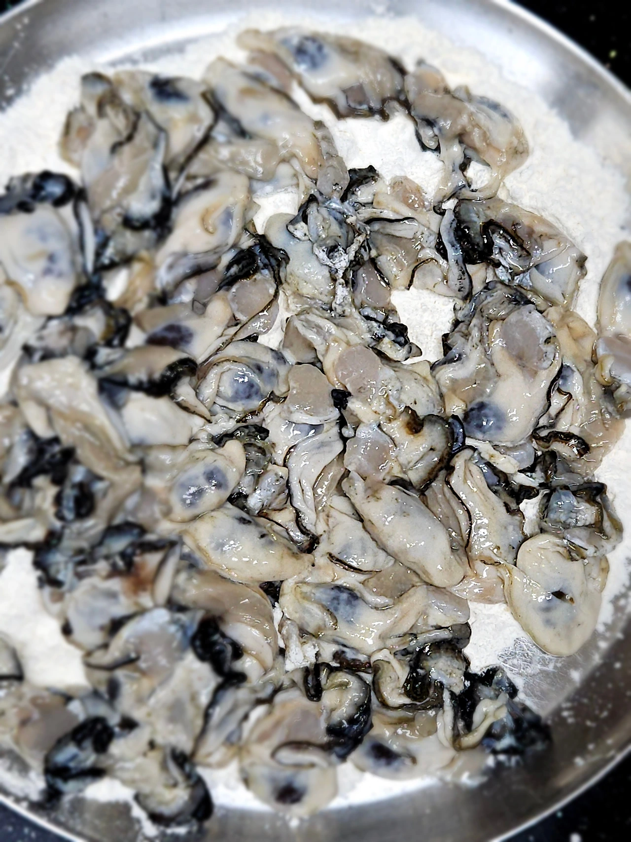막내 아이가 아빠랑 재래시장에 가서 굴을 사 왔어요 지난 토요일 저희 집은 겨울 배추 김장김치를 또 두둑이 담갔는데요 배추김치 소에 굴을 넣고 버무릴 생각이었는데요 그냥 굴전을 부쳤어요~^^