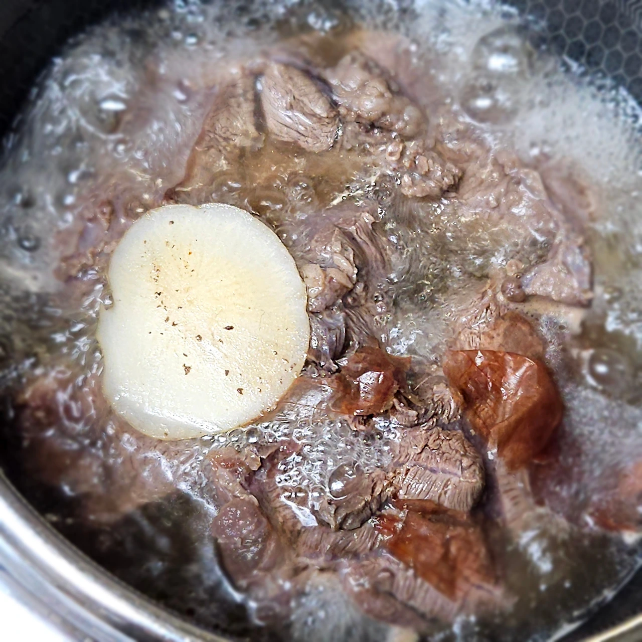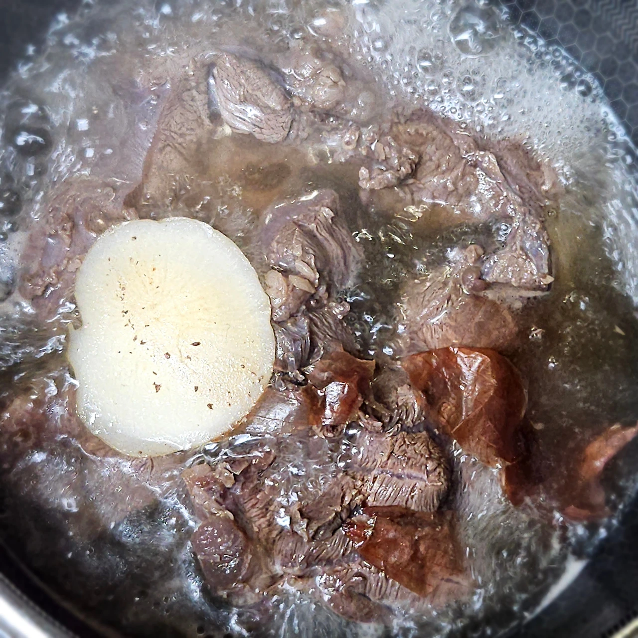 큰 냄비에 물 가득 넣고 양파껍질 무 껍질