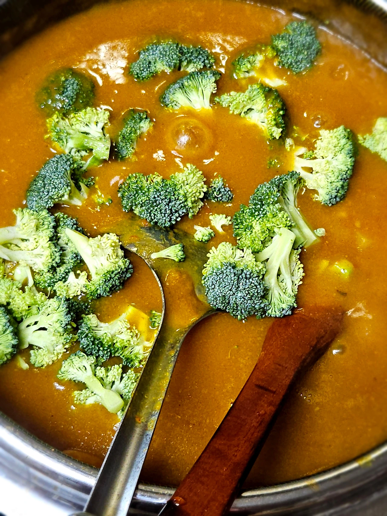 갈아서 넣고요 당근 1개 양파 1/2개 통마늘 몇 개 편 썰고요 브로콜리도 언제 사놓았는지 얼른 꺼내 들었어요