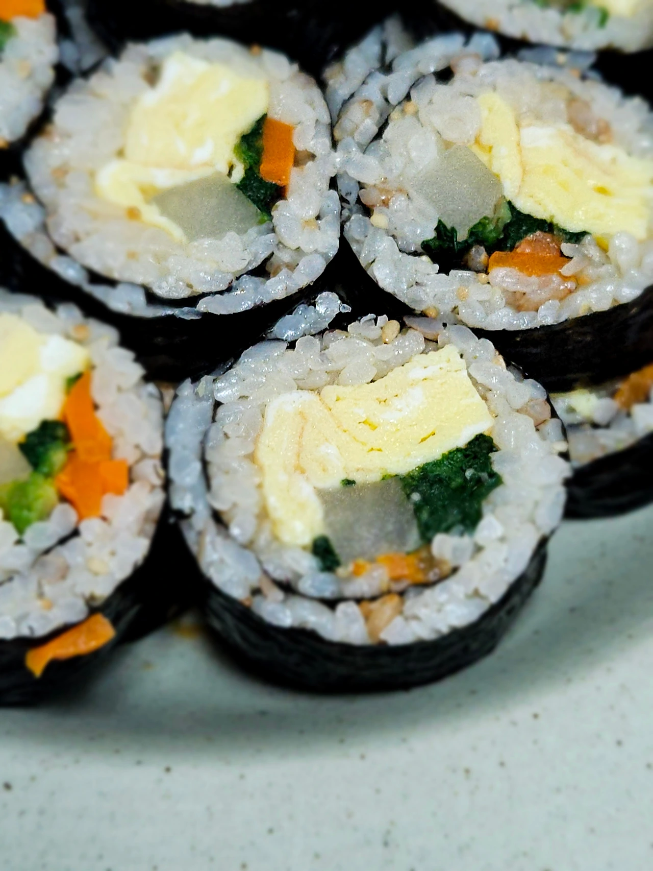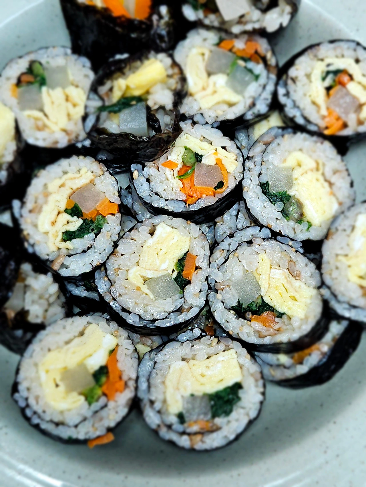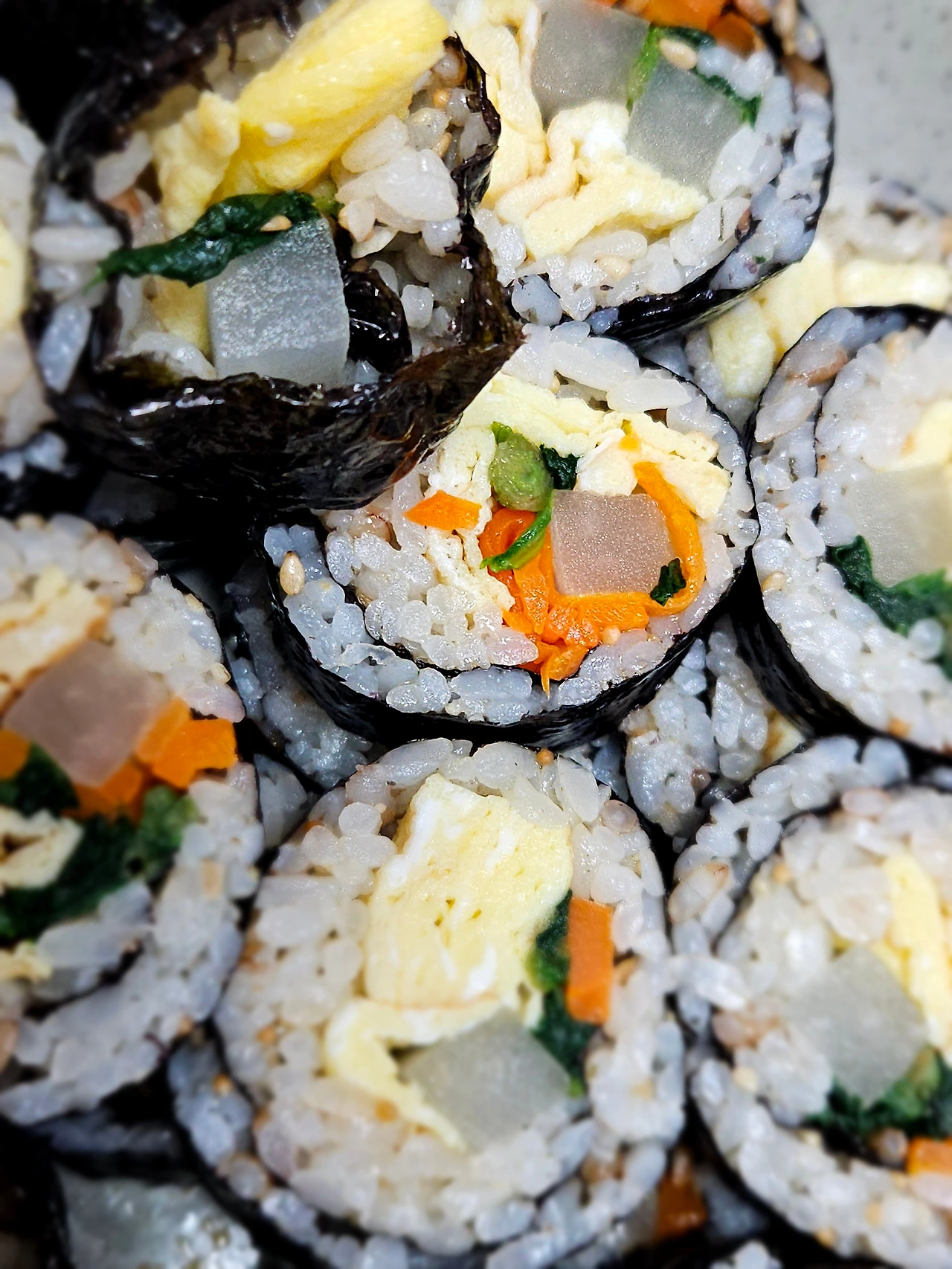 계란, 단무지, 시금치, 당근 올려 준 다음