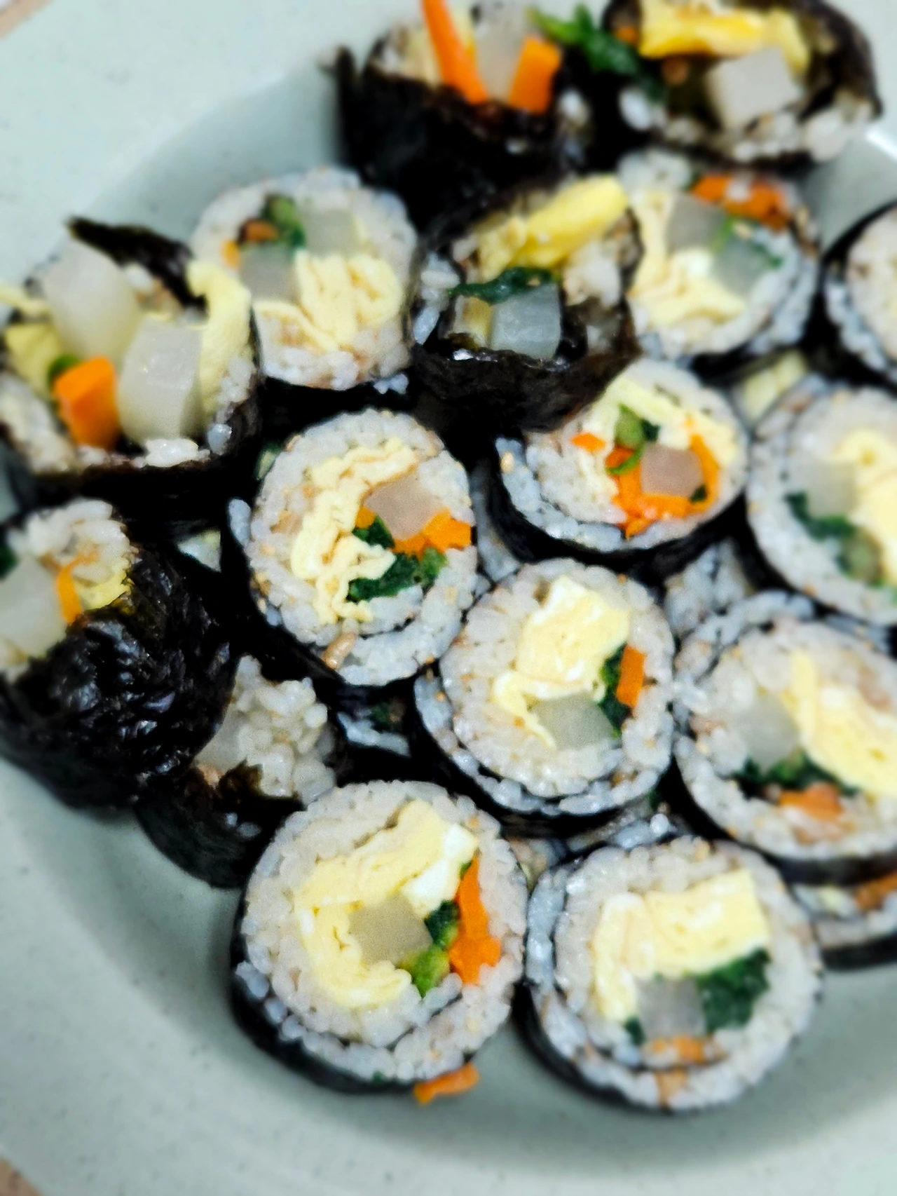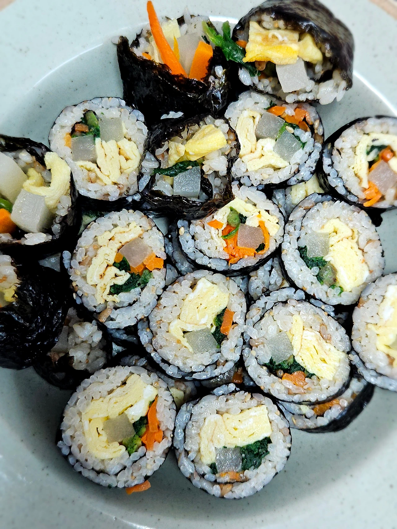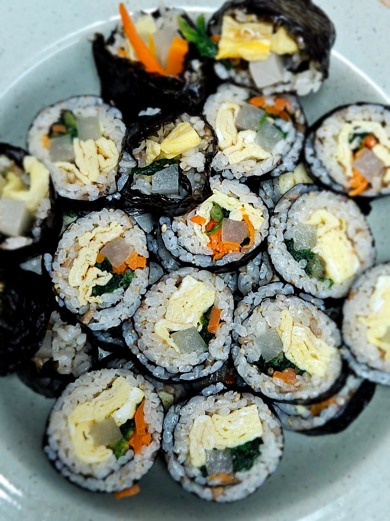 올해 중학교 2학년 올라가는 첫째 아이가 며칠 전부터 김밥이 먹고 싶다고 노래를 부릅니다 오늘도 또 김밥 김밥 노래를 부릅니다 김밥용 김 구입해 놓은 것 있고 단무지 구입해 놓고 김밥 만들어야겠네 하다가 또 하루 이틀 지나가고 오늘 드디어 김밥을 만들었어요 계란 듬뿍 지단을 부쳐서 김밥 만들 준비를 합니다