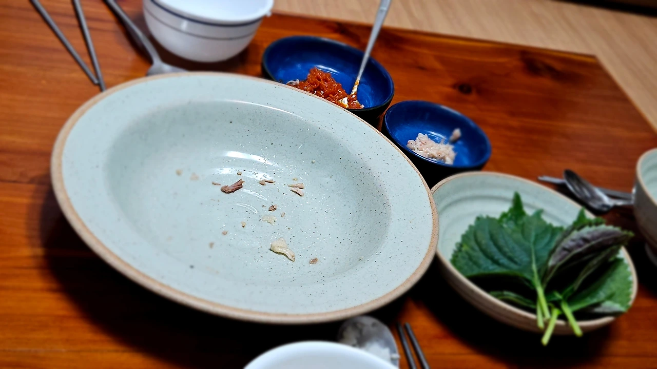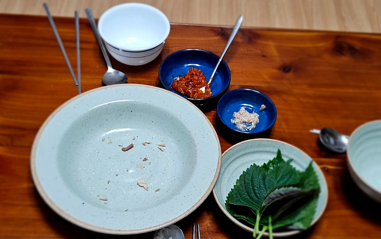 오늘 아침은 간단히 수육에 아침을 먹었어요