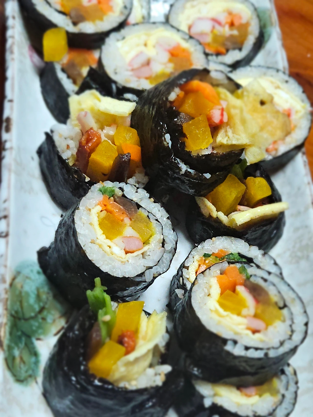 냉장고 파먹기 김밥에 대충 넣어서 만들면 되고