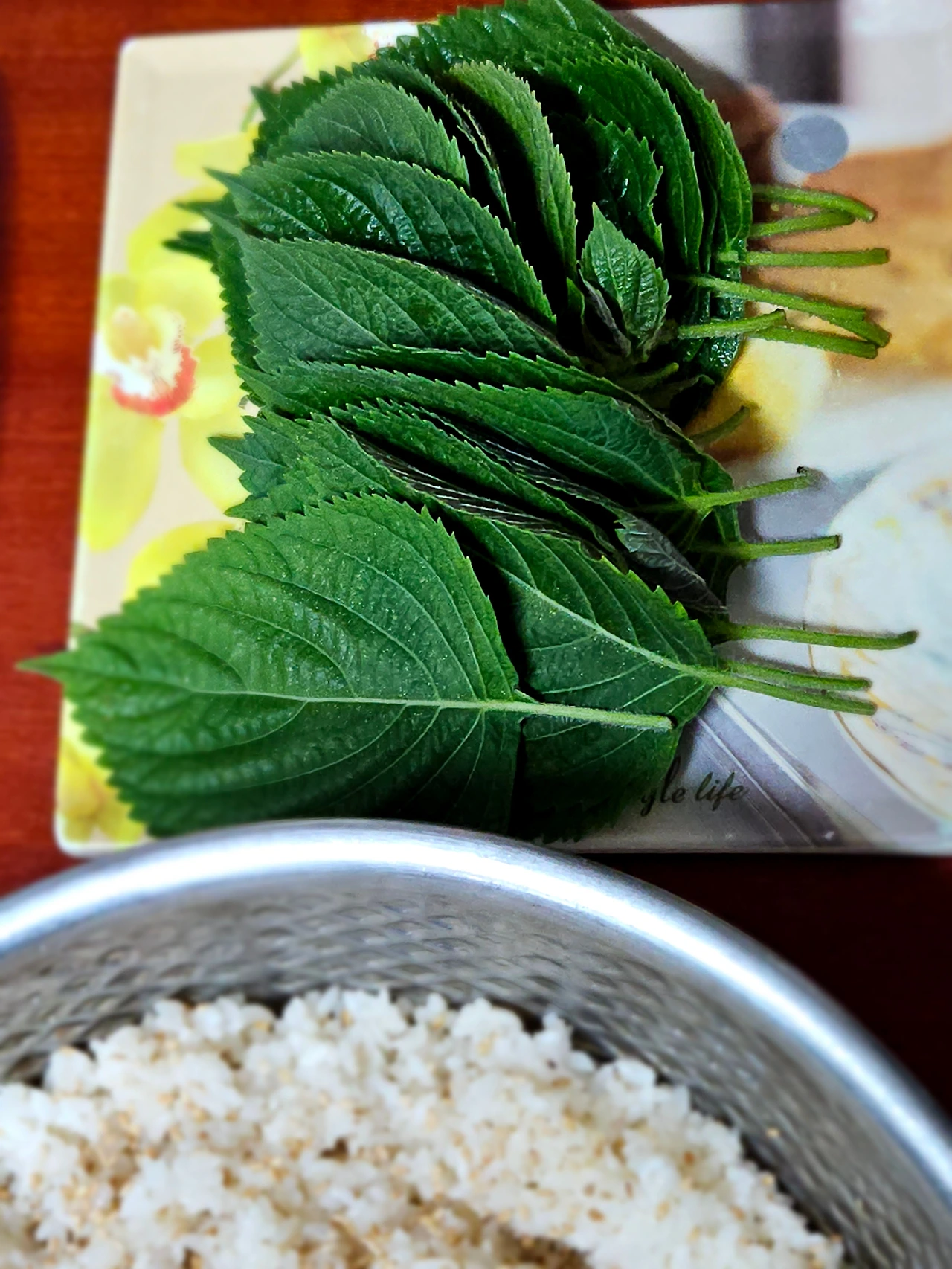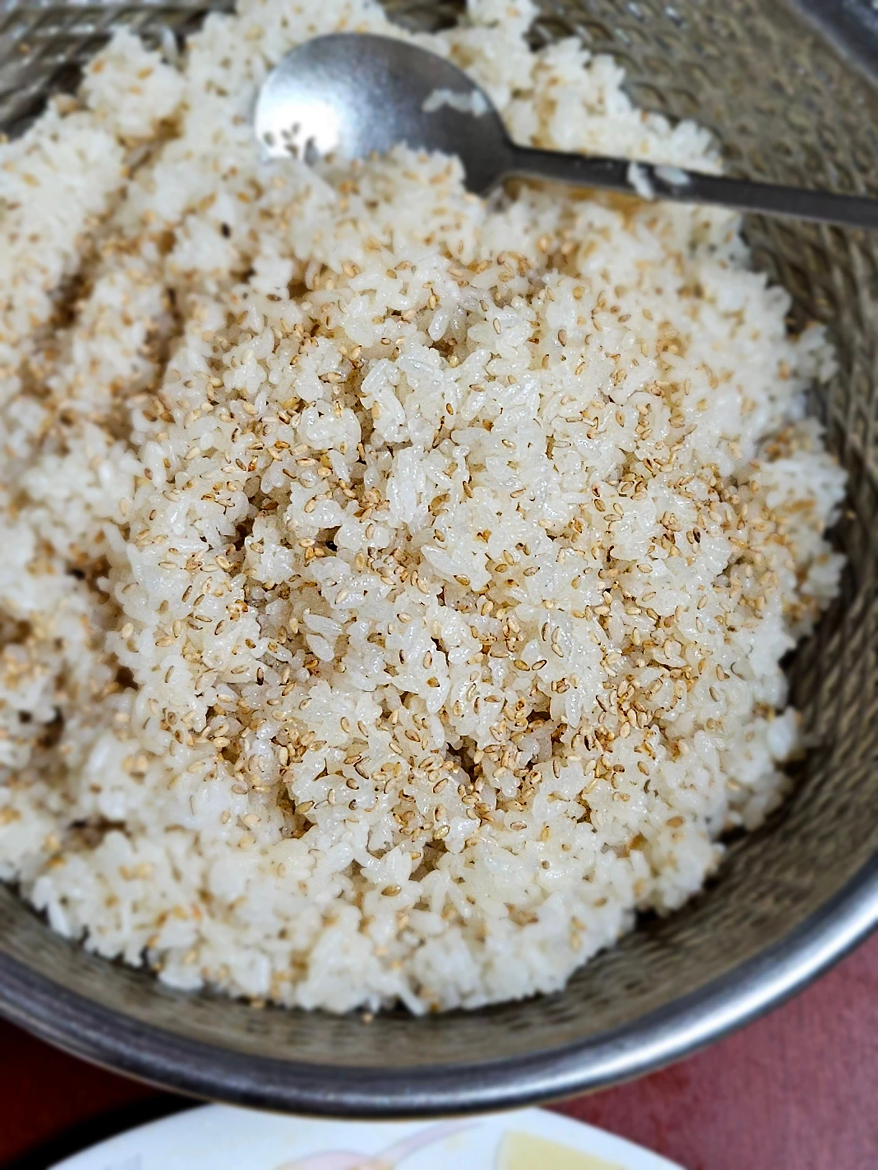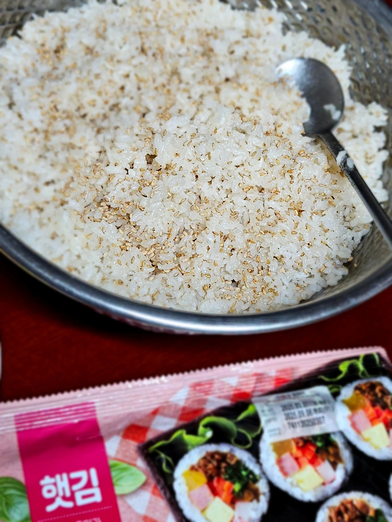 밥에 참기름 맛소금 통깨 양념을해서 준비합니다