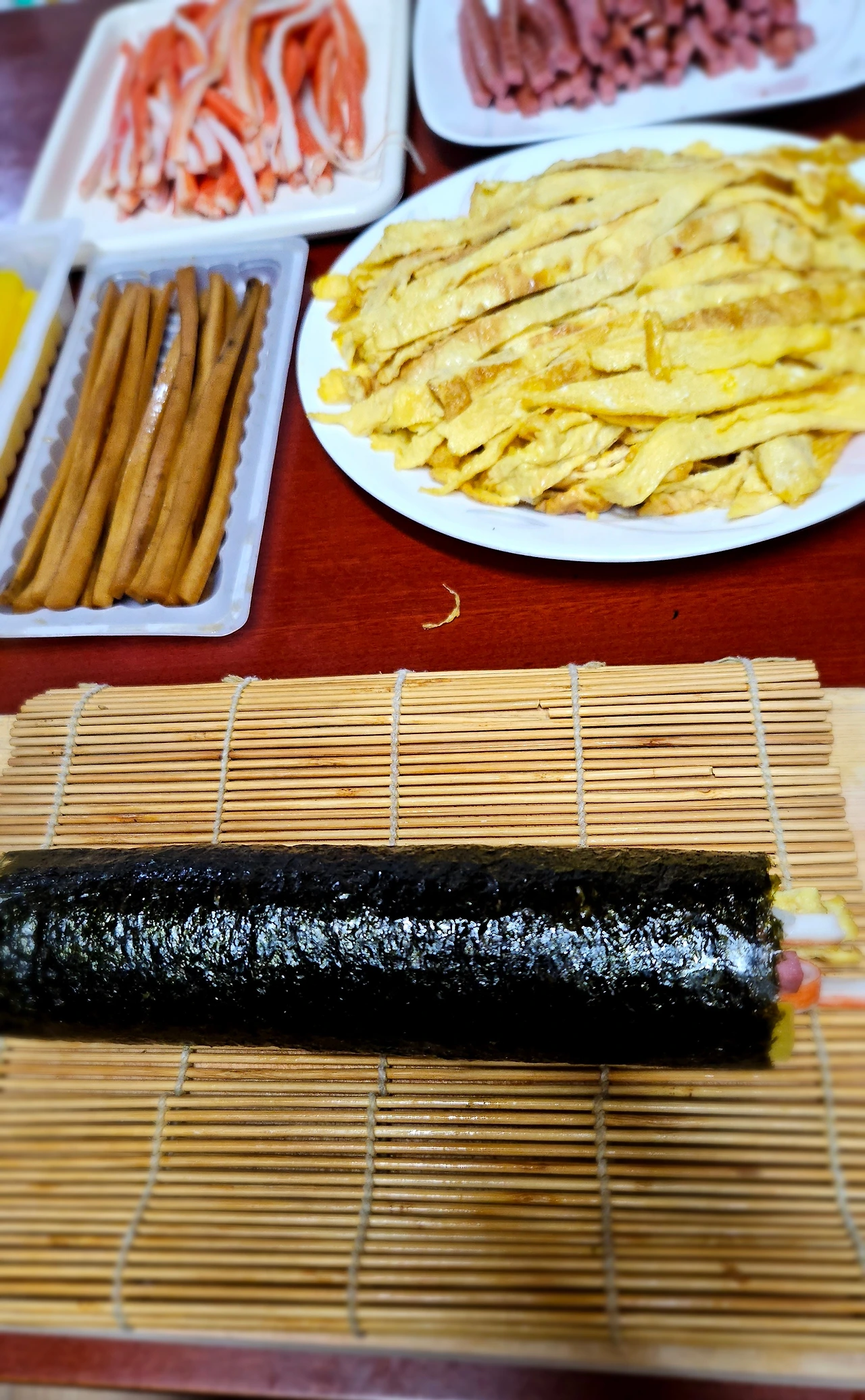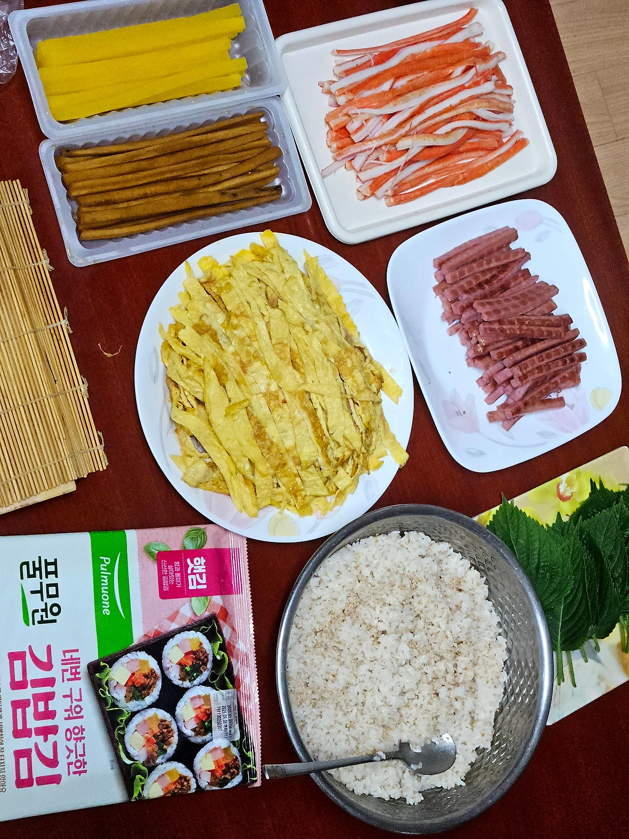 그렇게 저희는 부침개에 김밥을 곁들였습니다