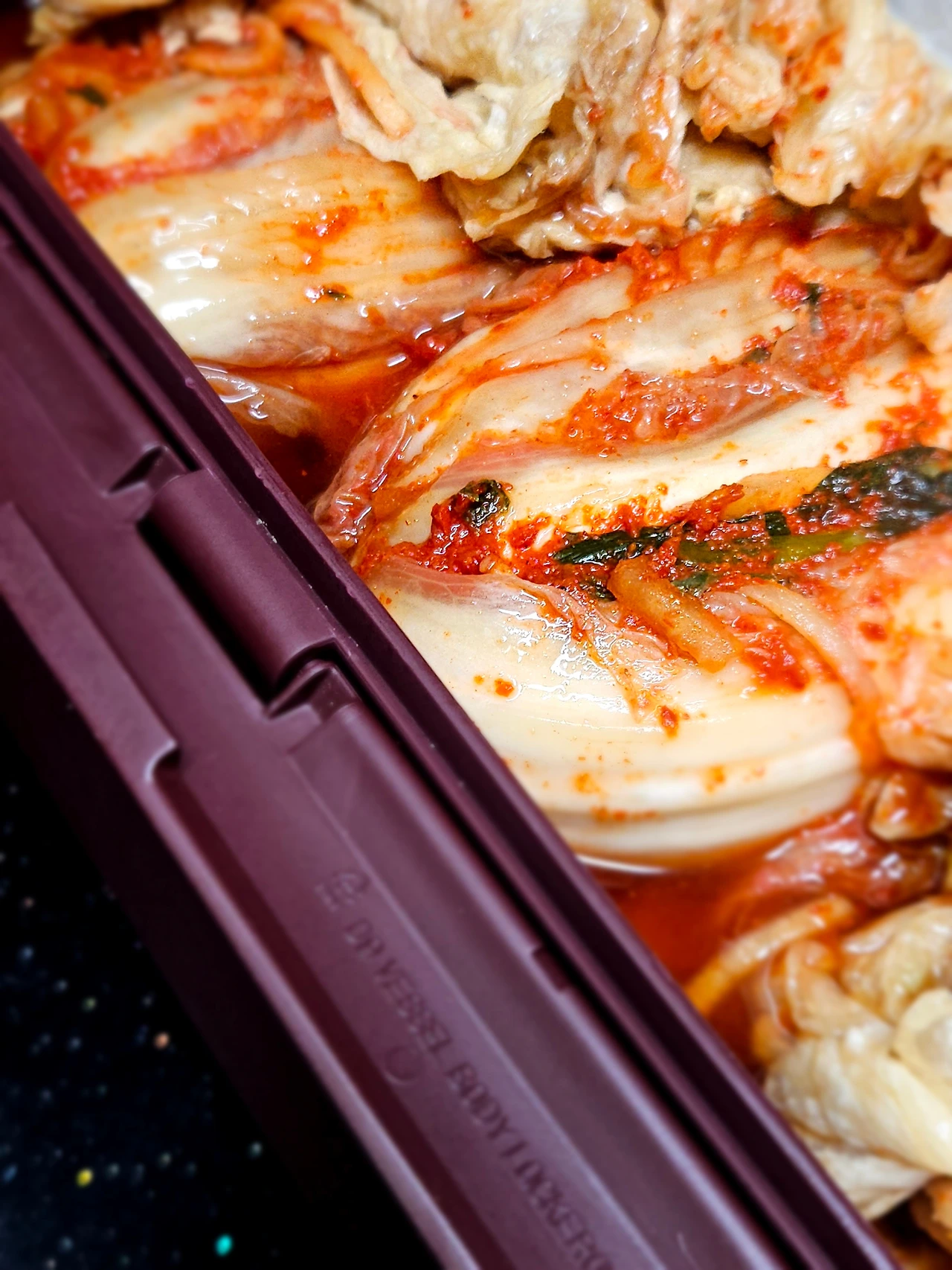 남편이 친정 시댁에서 김치 아예 받아먹지 말라고 해서 여태껏 몇 년 동안 김치 아예 안 받아먹었거든요 그런데 올해 신정에 시어머님이 감사하게도 김장 김치를 한 통 챙겨주셨답니다 쪽파 김치도 함께 챙겨주셨는데 그건 진작에 다 먹었어요(너무 감사드립니다)
