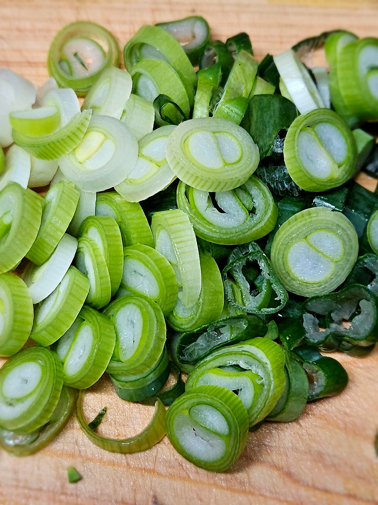 남편은 김밥 몇 젓가락을 먹다가 냉장고에서 부추를