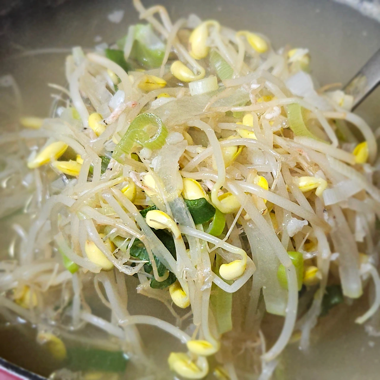 남편이 생각이났어요 하하하 이런 네에 그래서 맑은 콩나물을 끓였습니다 멸치육수 내면서 메뉴 변경을 했습니다