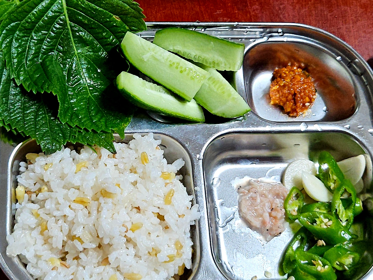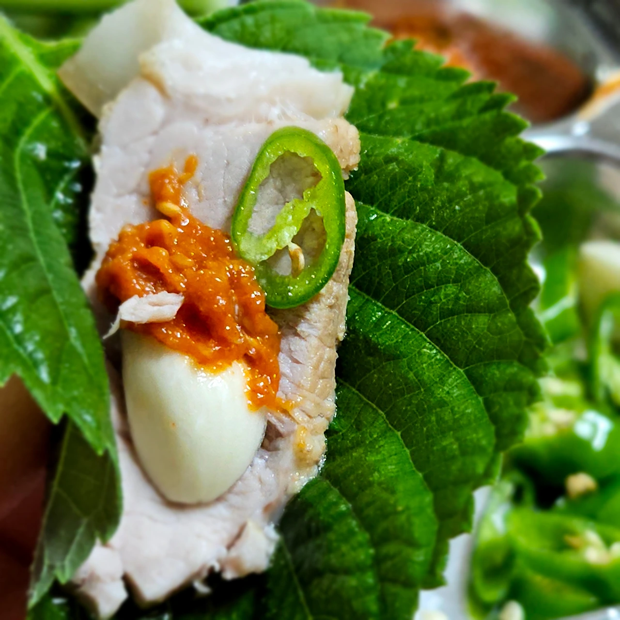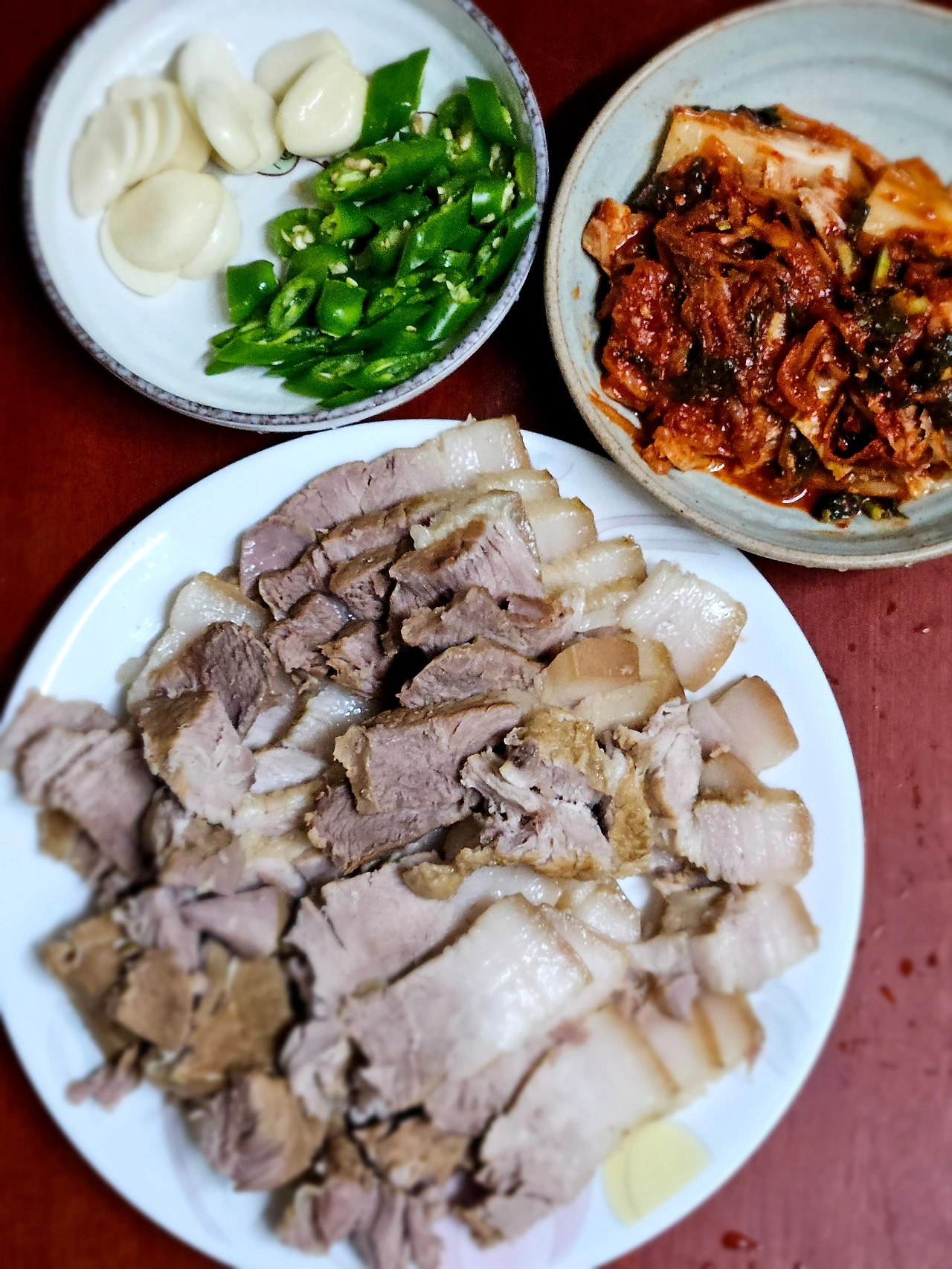 마늘 편썰고 고추 송송썰어서 수육에 곁들였어요