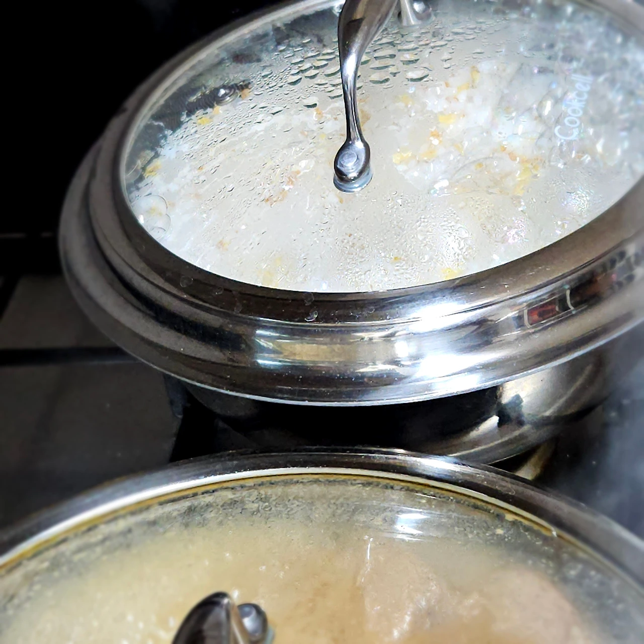 중불에서 30분 후 가스불을 끄고 뚜껑 그대로 닫아서 뜸들이기 10분 총 50분 소요되었어요