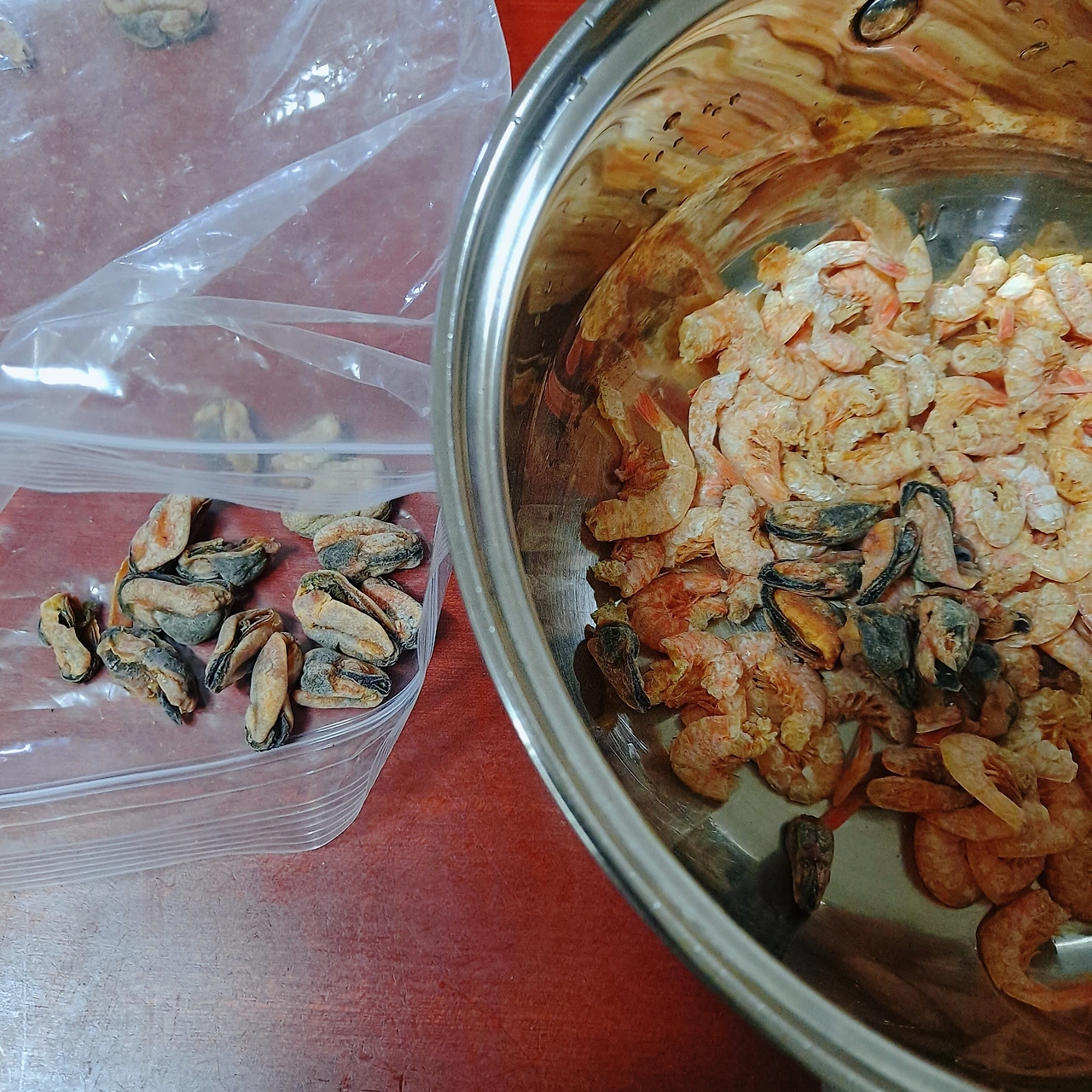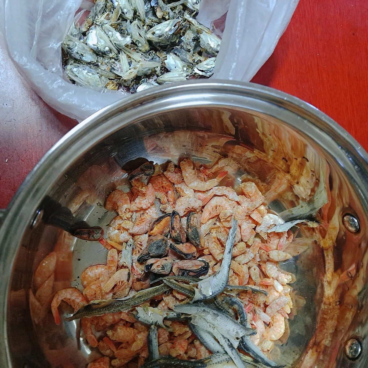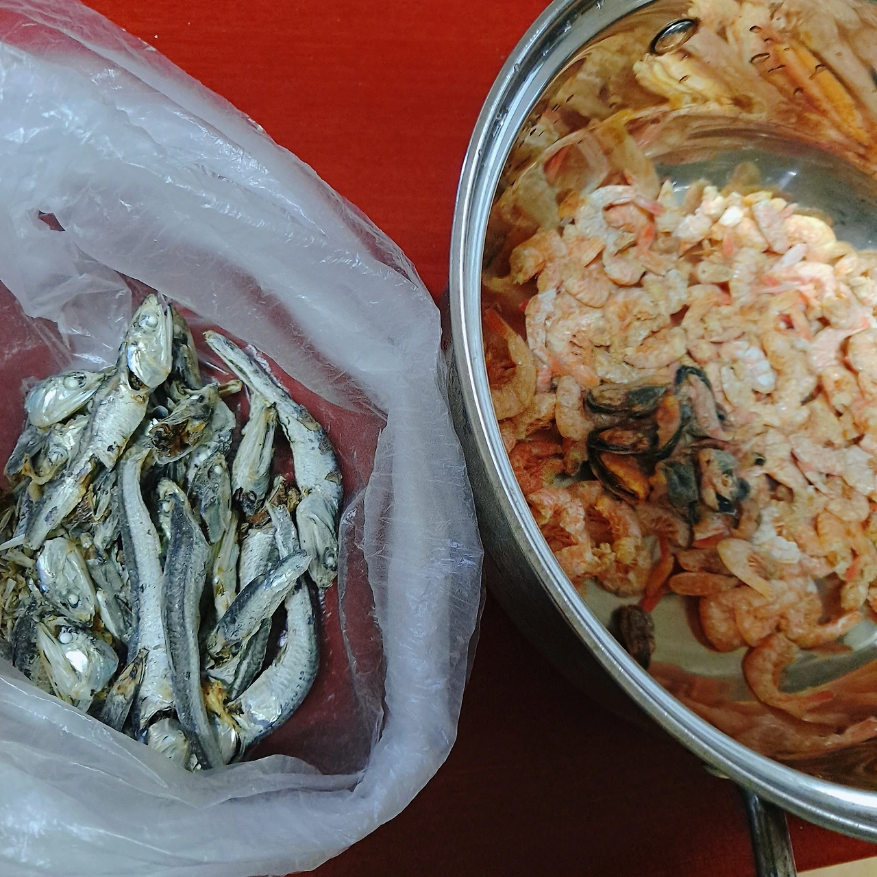 집에 냉동실에 굴러 다니는 건새우 육수용 멸치