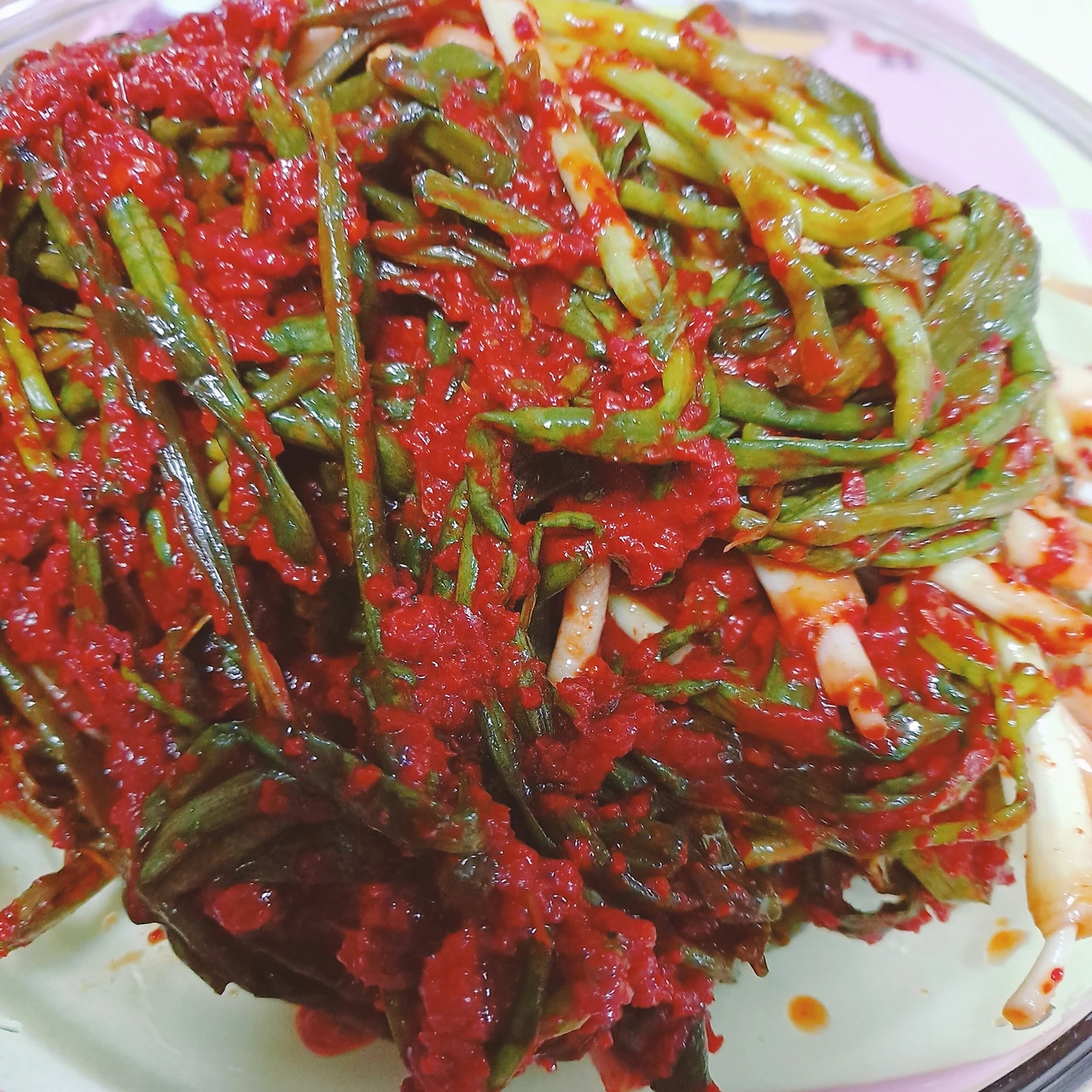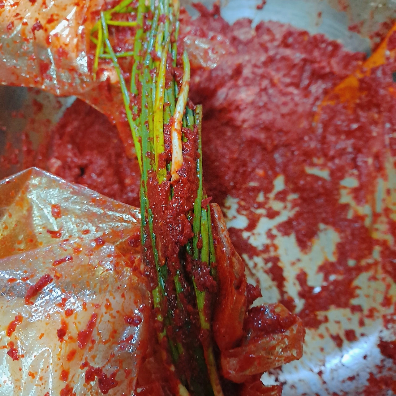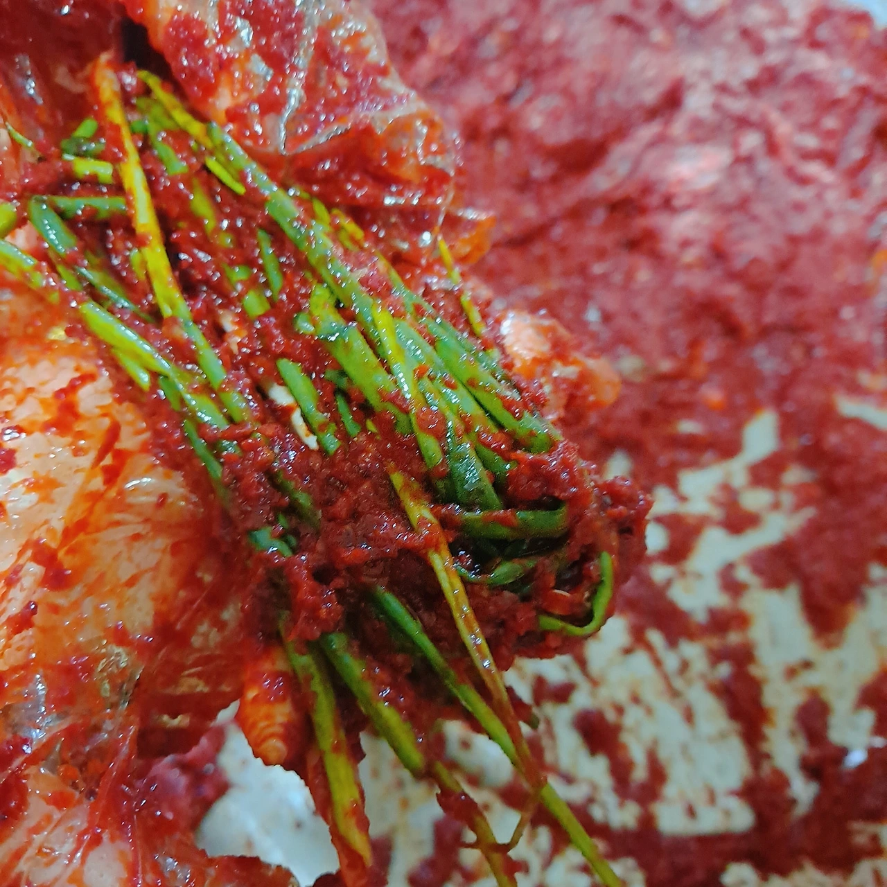 (쪽파김치 다 담그고 양념이 많이 남아서 냉장고에 보관 다른 김치 담가 먹을 때 사용하려고 해요 고춧가루 양은 적당량 넣으려고 하는데 대략 짐작해서 하기가 어려운 것 같아요 ㅠㅠ)