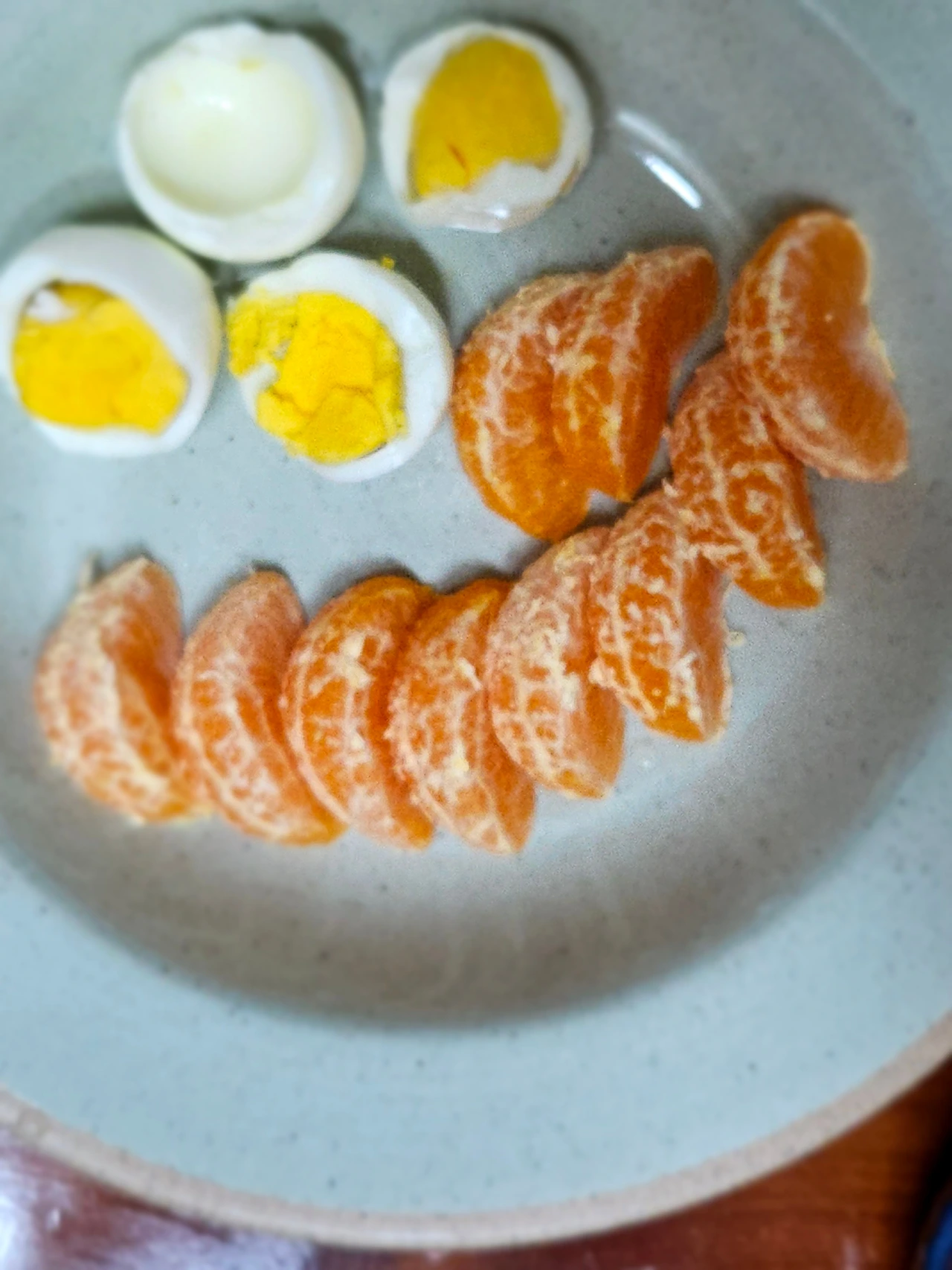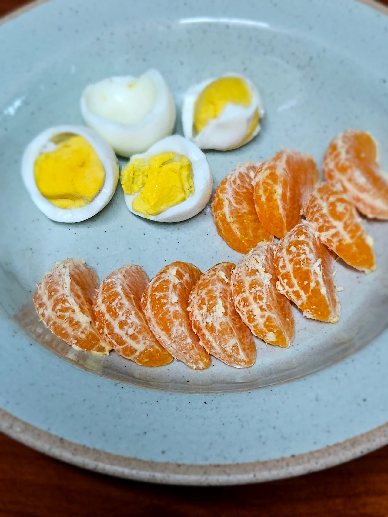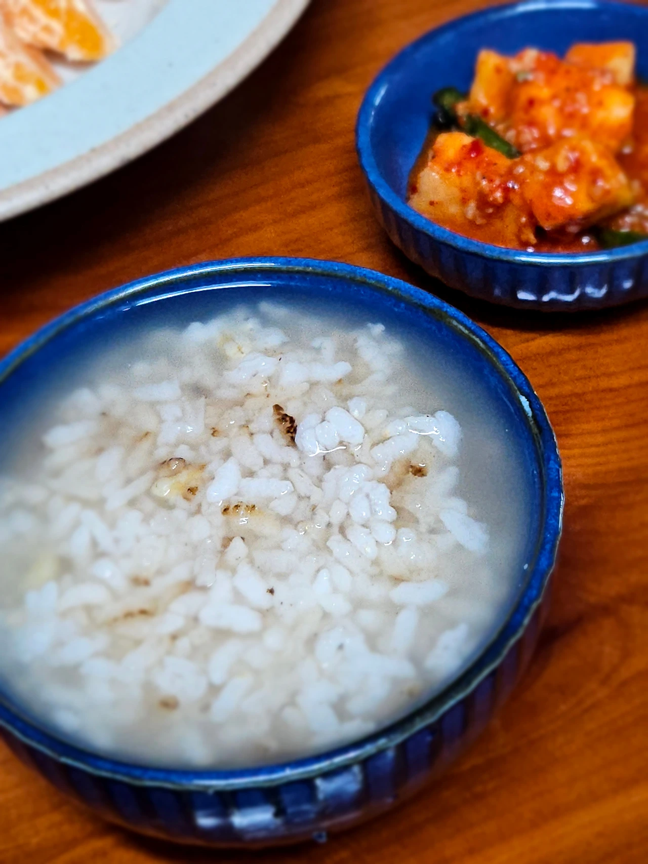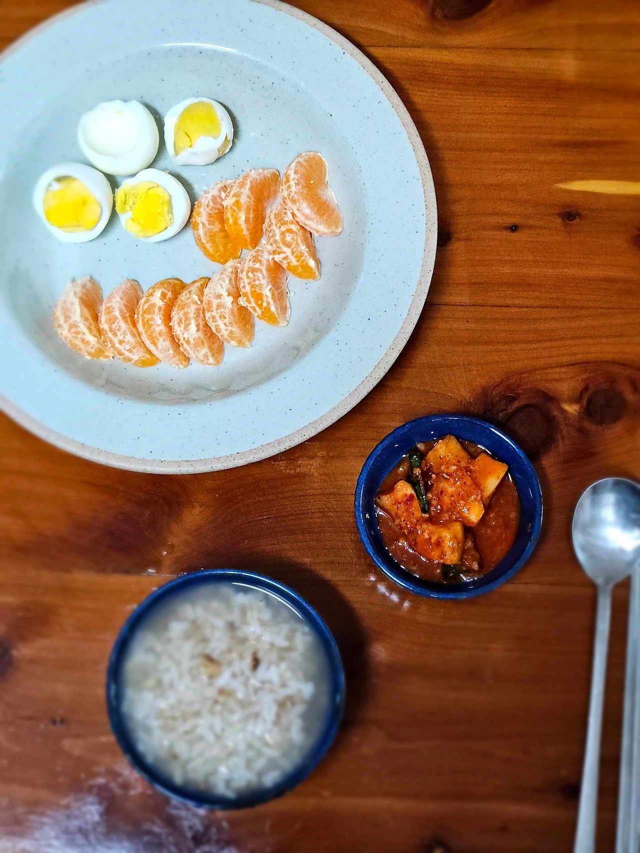 깍두기 조금 꺼내고 계란, 귤, 누룽지에 든든하게 한 끼 감사히 먹었습니다