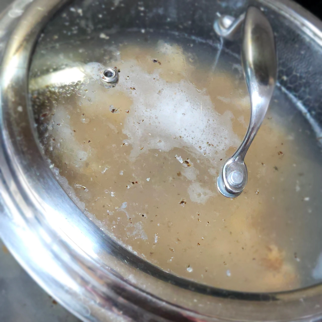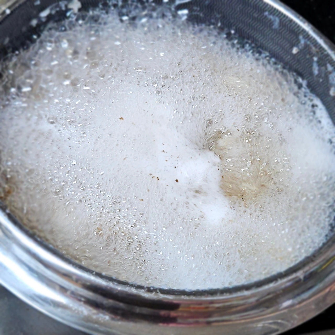 물 가득 넣고 냄비 뚜껑 닫고 바글바글 물이 끓어오르면 가스불을 끕니다