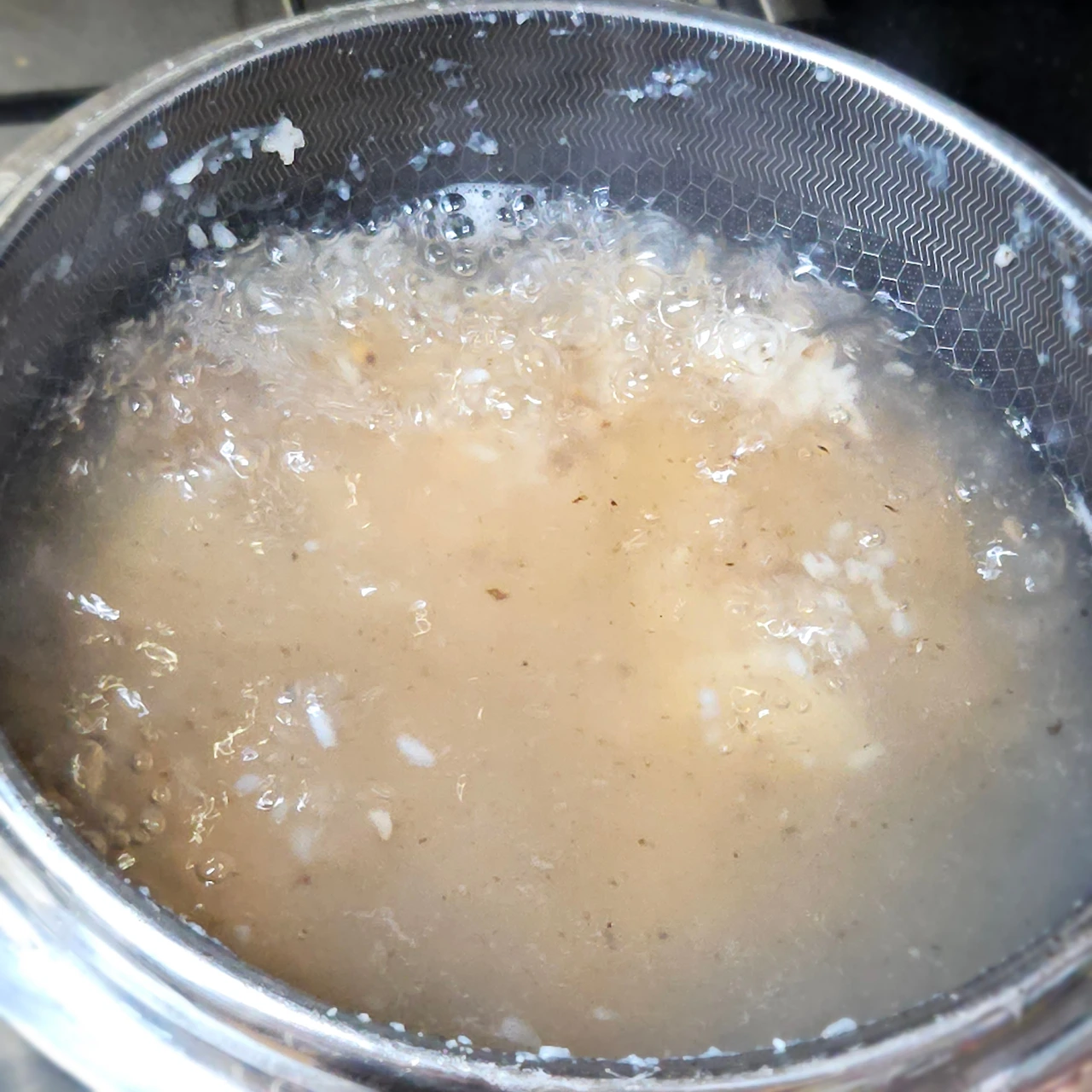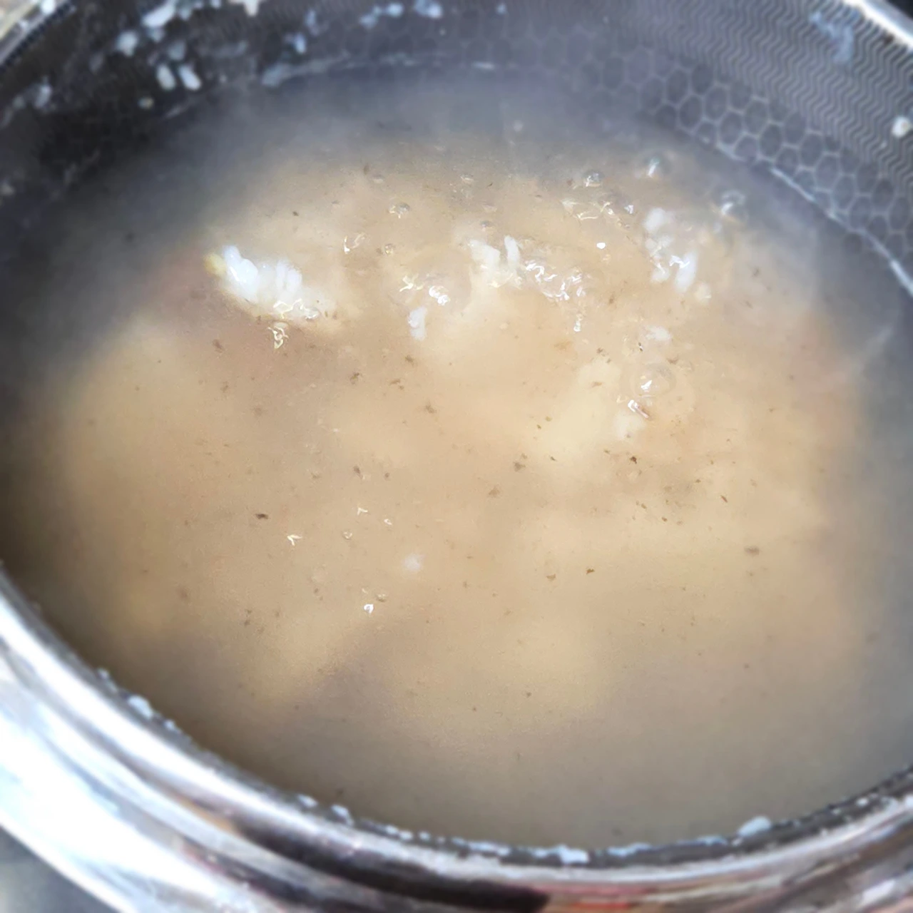 누룽지에 물 부어주고 누룽지를 끓여 주었어요