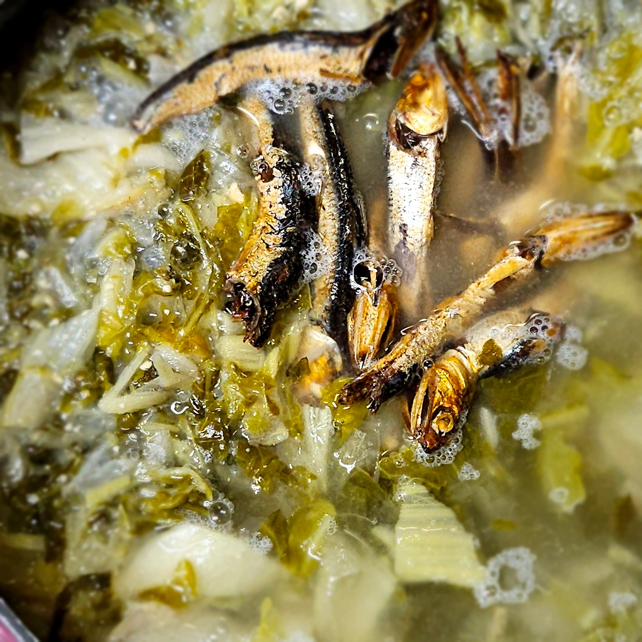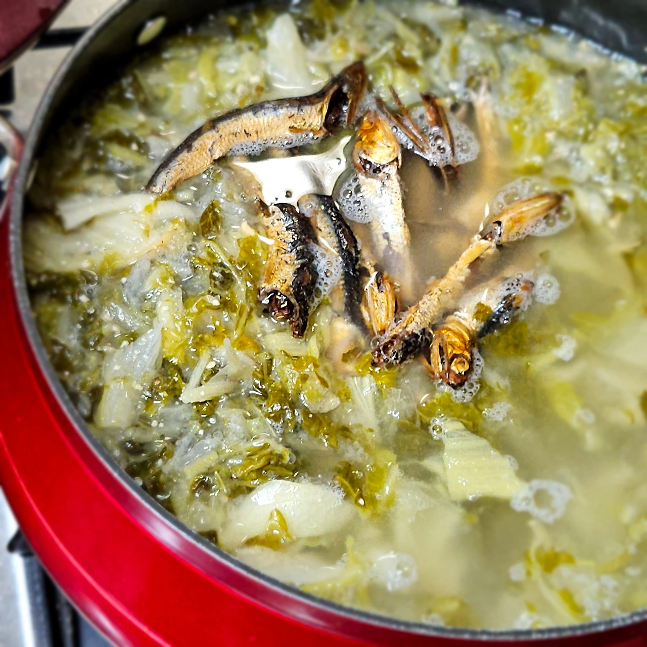 지난번에 육수용 멸치 넣고 배추된장국 한 솥단지 끓여서 먹었다 그러고도 배추 우거지가 한가득 남아 있었다