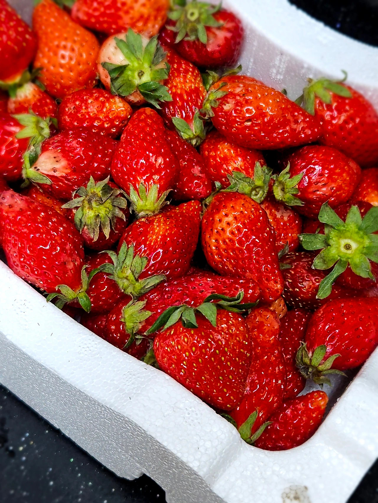 상처나거나 물러진 딸기들은 먼저 골라내었다 이렇게 딸기 1kg 한 박스에 2천원씩에 판매하고 계셨다 개이득이다 딸기가 달콤하다 진짜 맛있다 물러진 딸기가 몇개씩 있지만 너무 맛있다