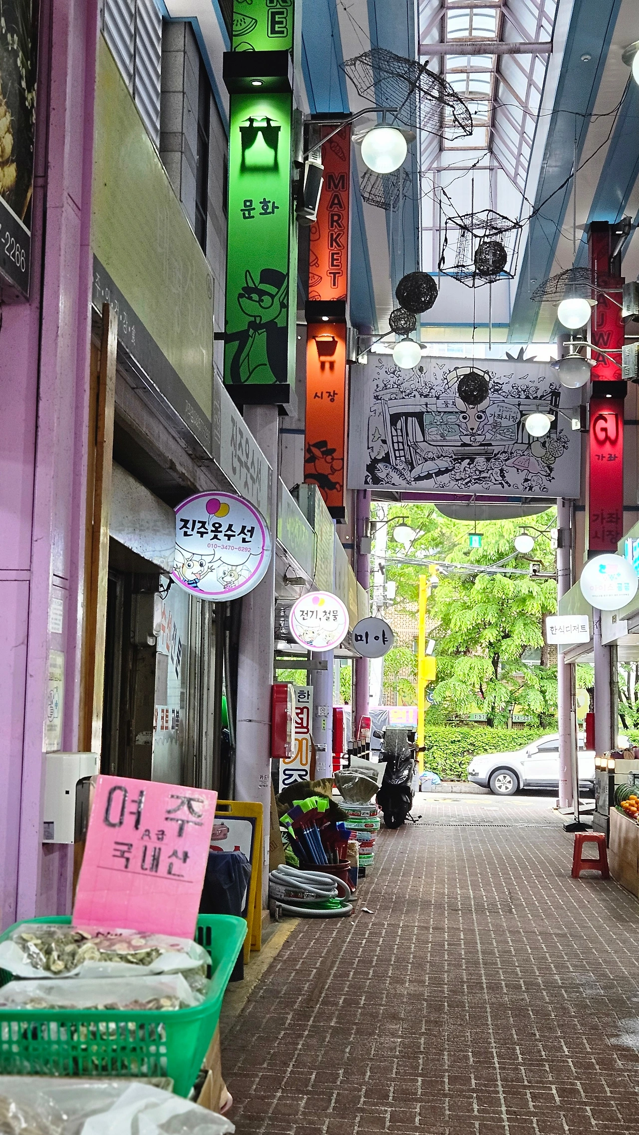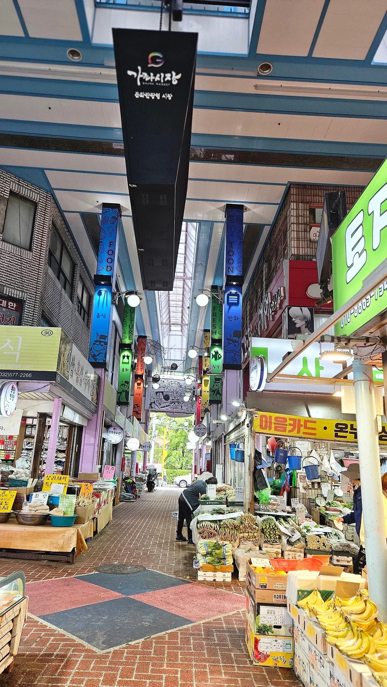 저기 보이는 연두빛 나무들도 예쁘고 시장 풍경도 너무 예뻤다
