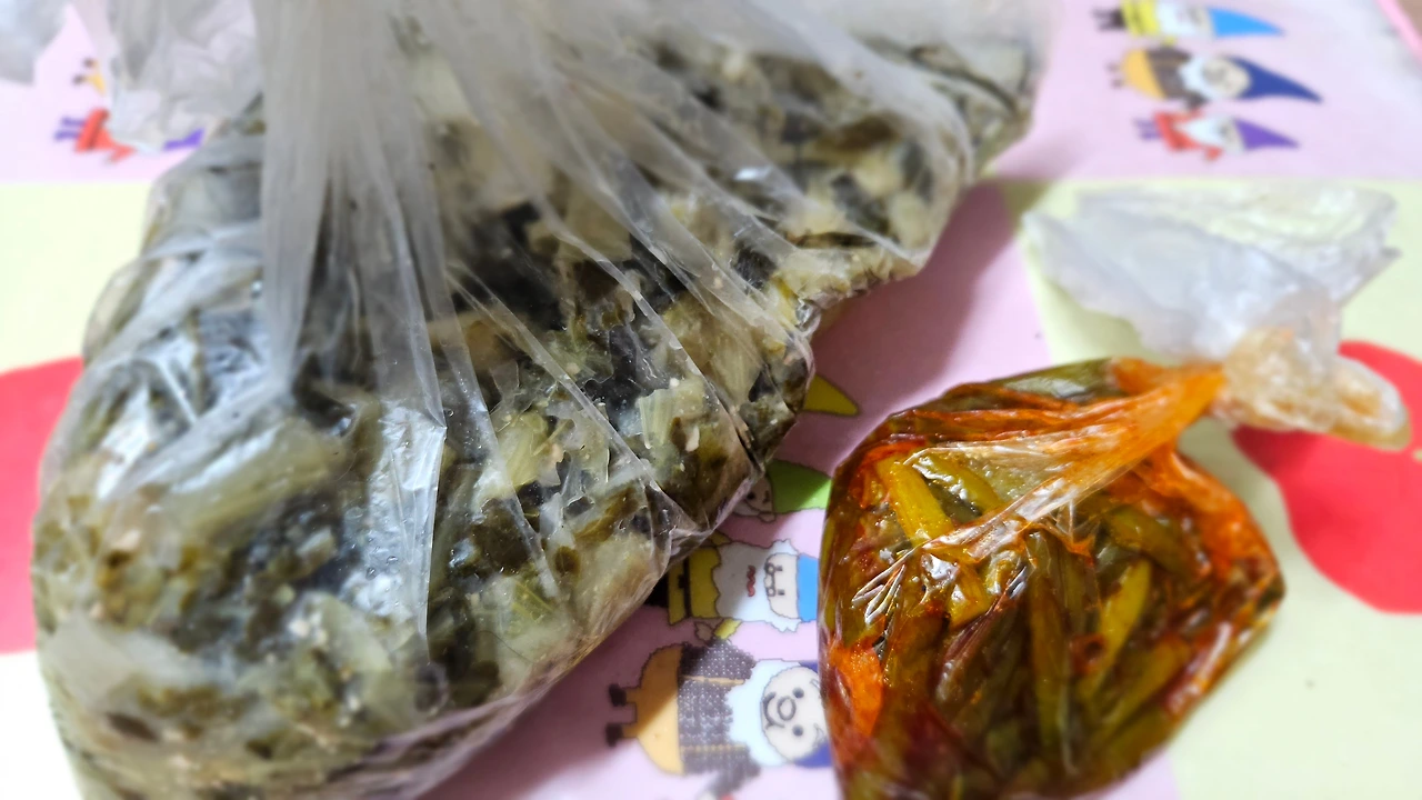 된장에 양념해서 보내주신 데쳐낸 배춧잎 우거지가 생각보다 엄청 많았다 봉지에 한가득했다