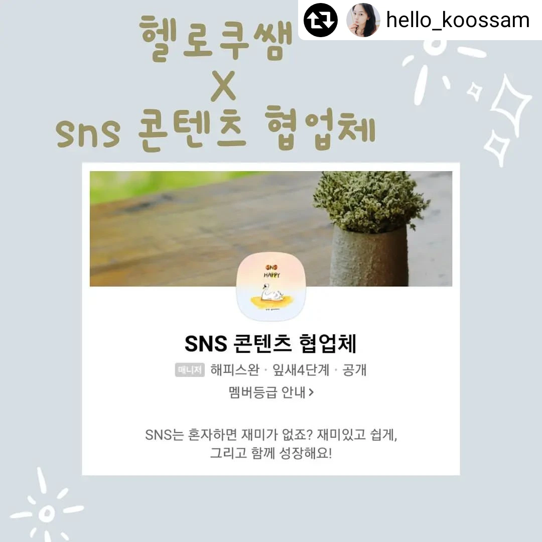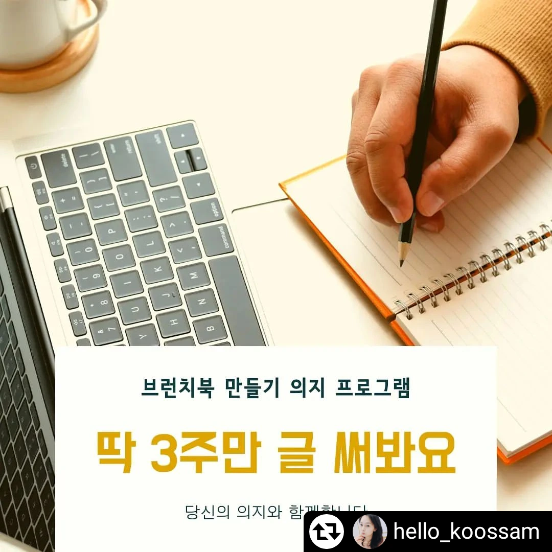 그렇게 시간이 흘러서 올해 10월에 또 저에게 너무나 좋은 경험의 기회가 찾아왔어요 해피스완 스완쌤님께서 감사하게도 헬로 쿠쌤님과 함께하는 브런치 북 도전 프로그램에 소환해 주셨어요 고민할 것도 없이 바로 신청을 했답니다 딱 3주 동안 서로서로 으샤 으샤 밀어주시고 이끌어주시고 따뜻한 손 잡아 주시면서 정말 매일매일이 열정 에너지가 넘쳐 났어요