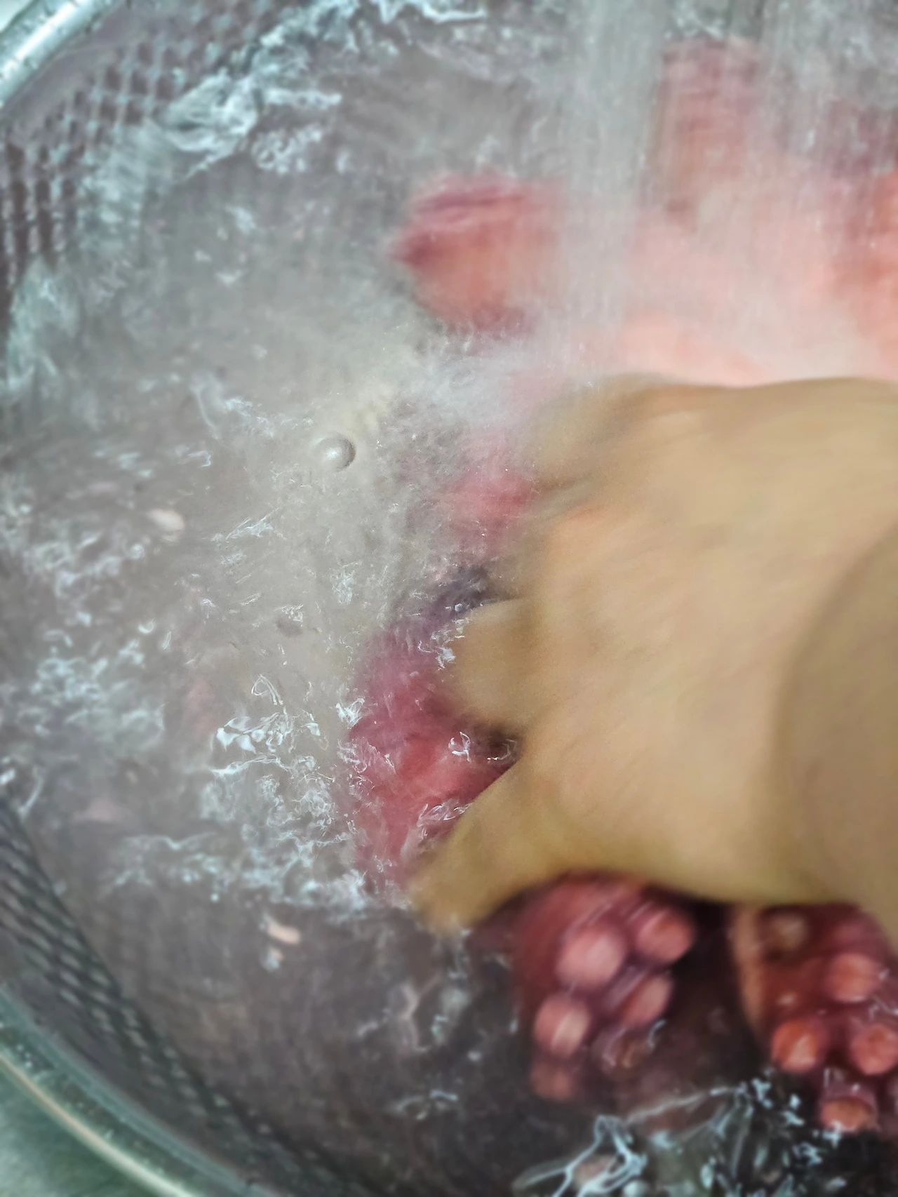모두 데쳐낸 문어는 차가운 물에 헹궈내기