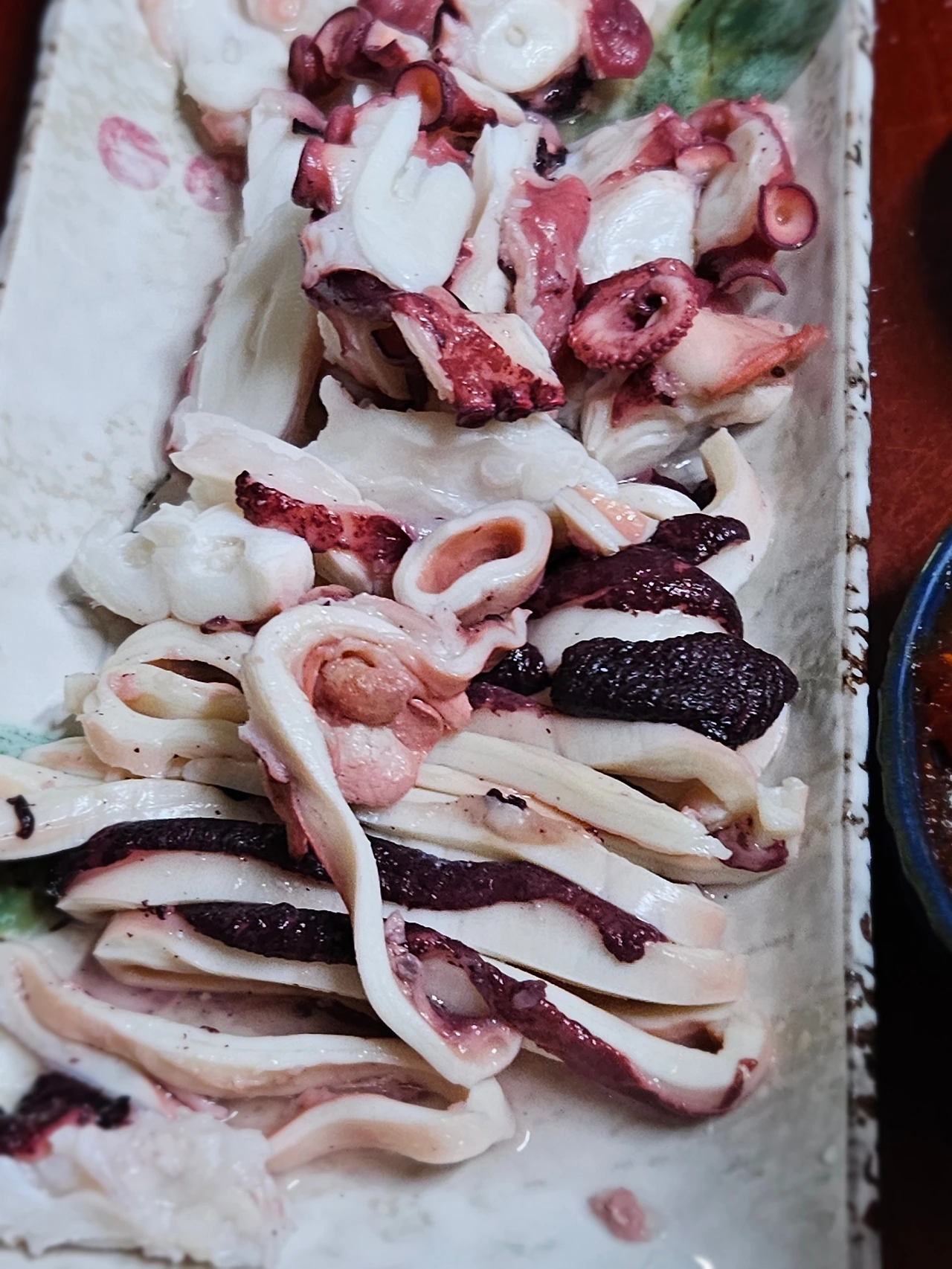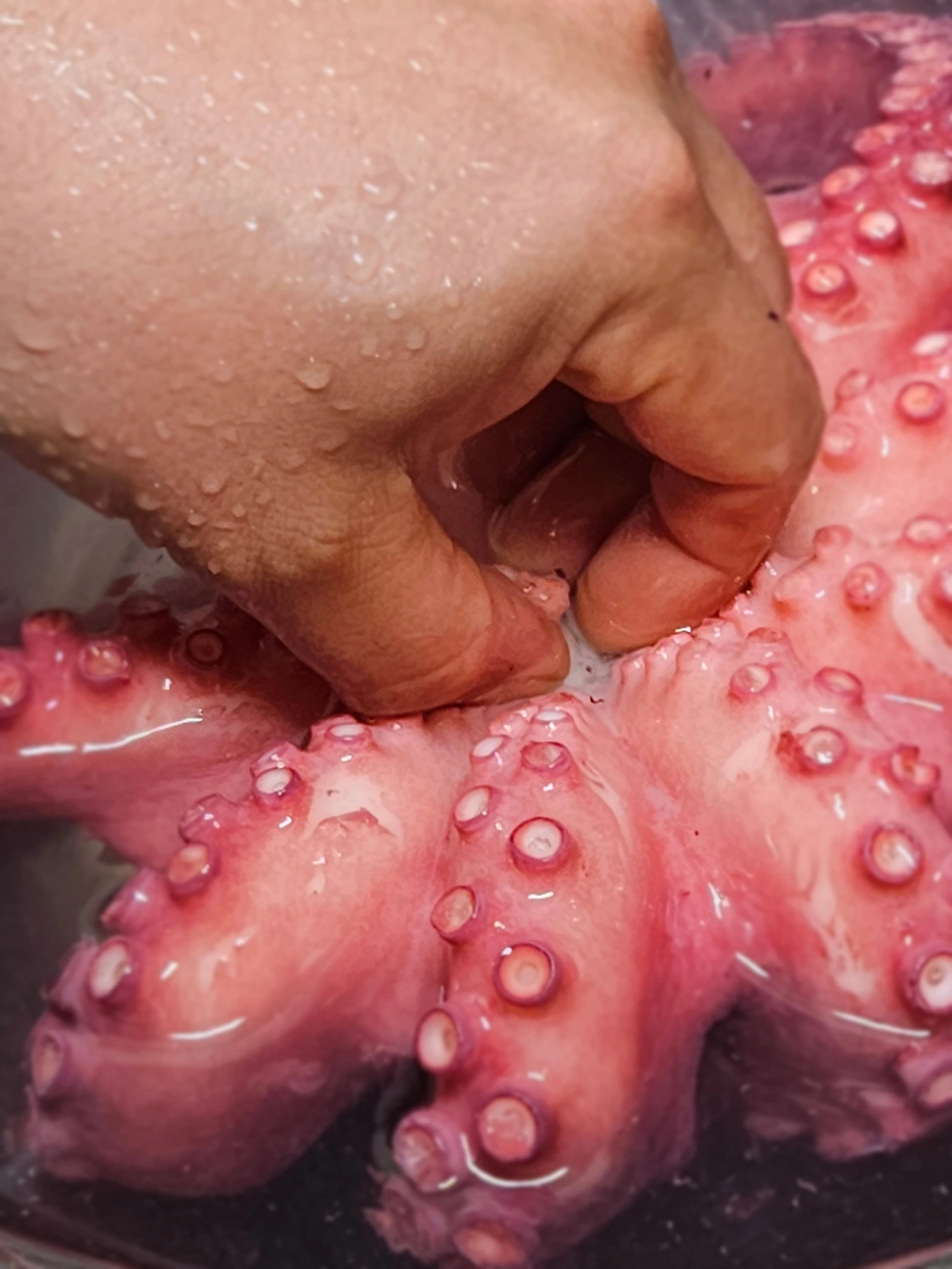 쭈꾸미 다듬는 거랑 비슷한데 그 크기가 어마 아마 해서 다듬을 때 살아있던 문어라서 무서웠............. 다