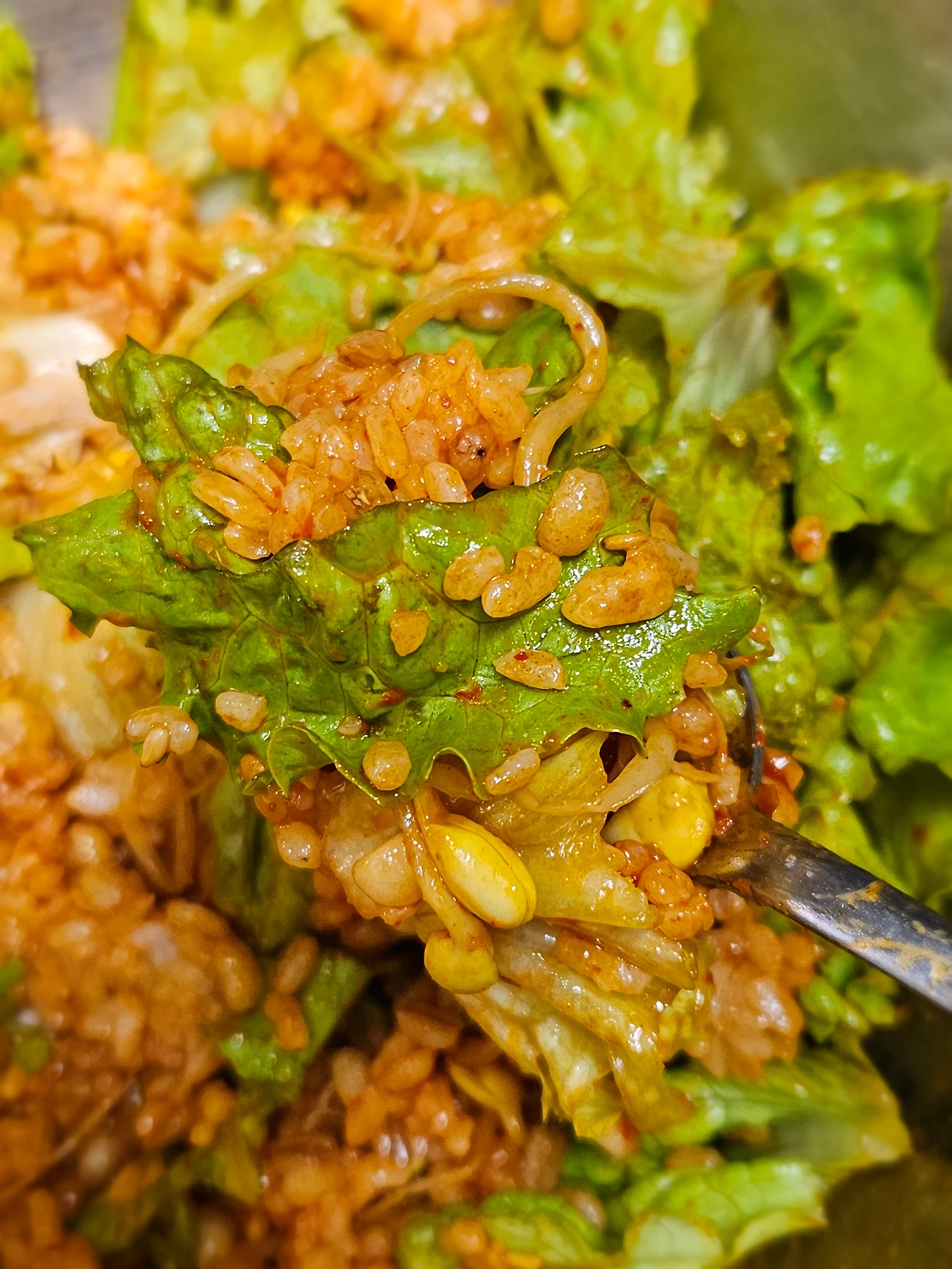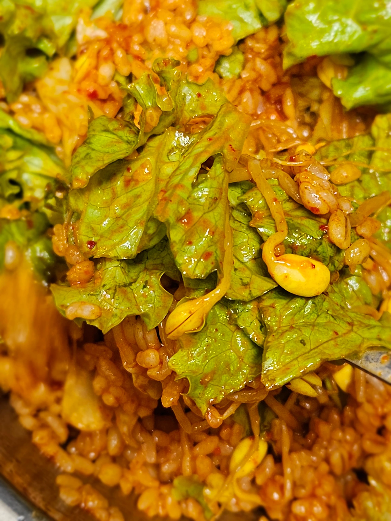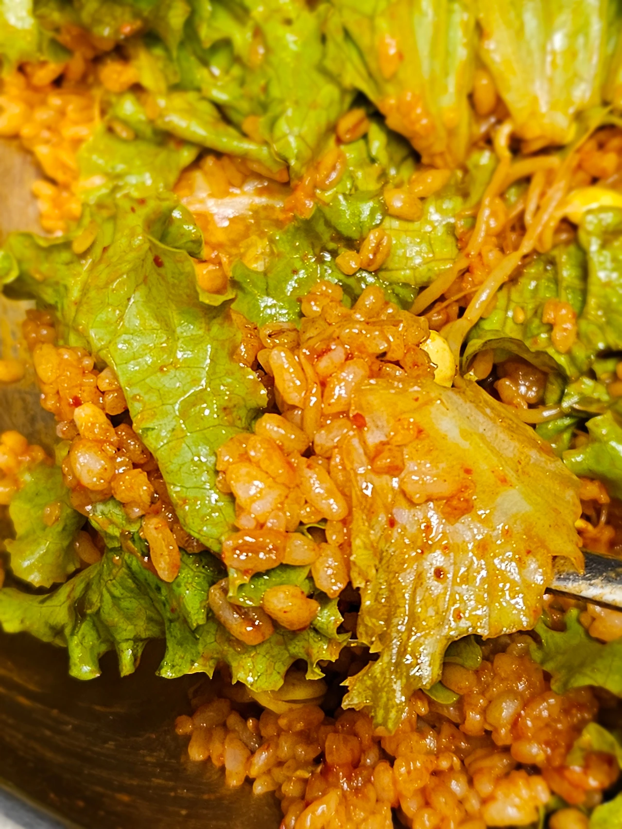 뜯어서 양푼에 함께 넣고 잘 비벼주기