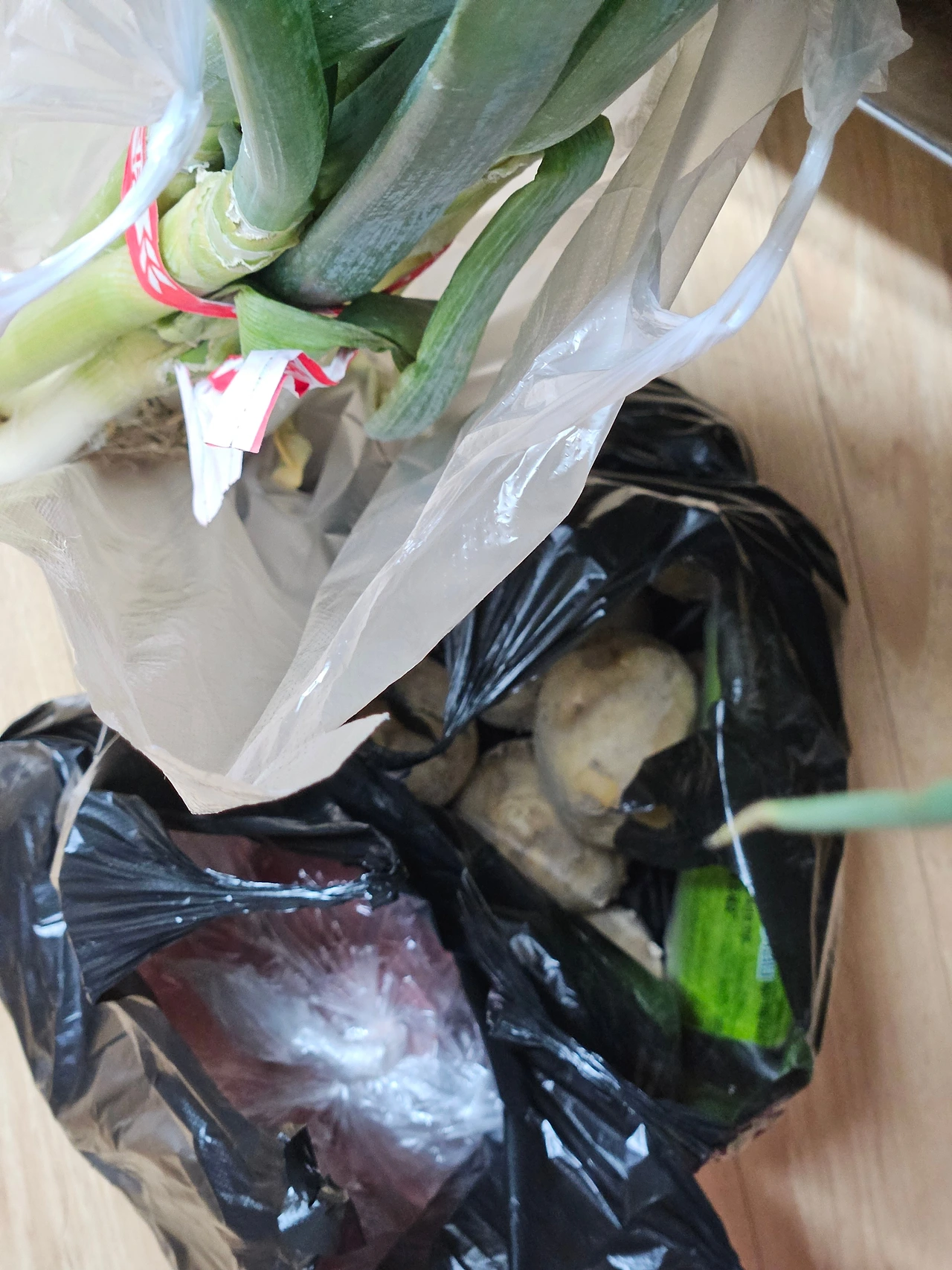 큰 감자 3개, 양파 큰 것 1개, 대파 2대