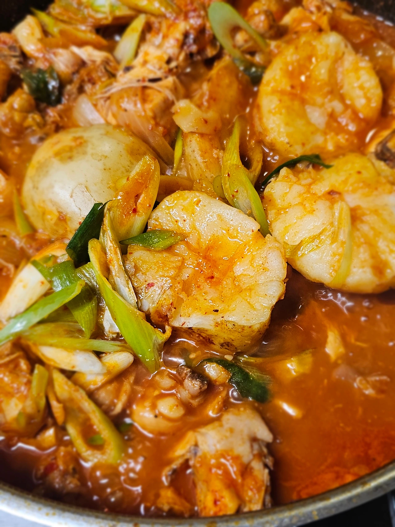 * 이때 감자도 함께 넣고 푹 끓여주기
