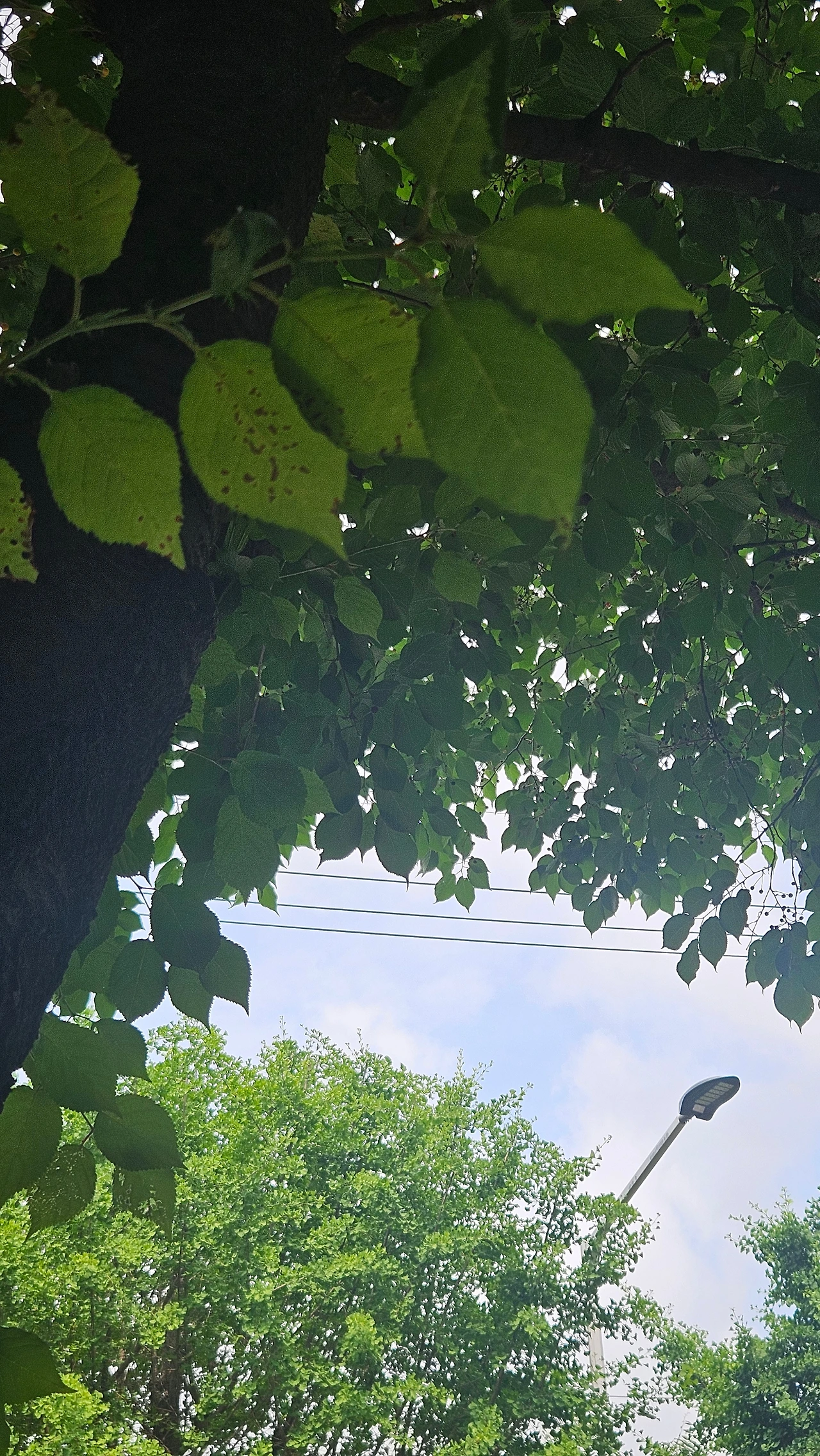 오랜만에 아침산책하기, 내 발뒤꿈치에 달라붙은 버찌열매
