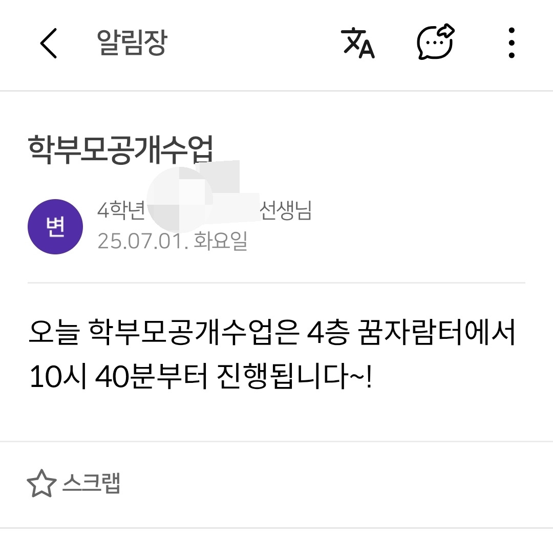 오늘은 초등학교 4학년 막내 아이의 학부모 공개수업이 있는 날입니다